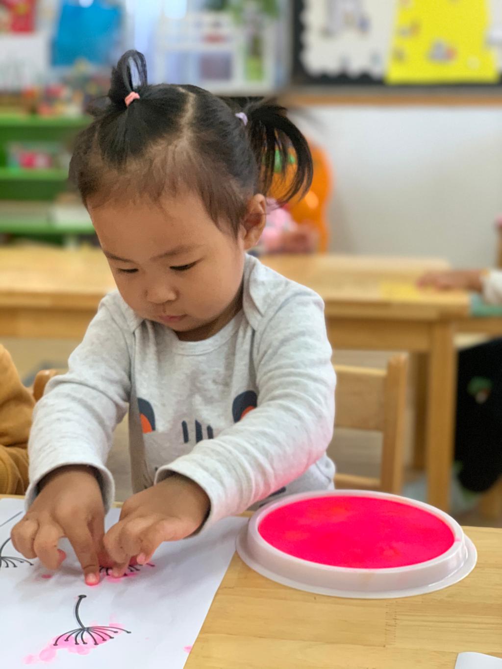 秋天真是多姿多彩,蒲公英也乘着微风,飞了起来,孩子们把观察的秋天景色,兴致勃勃地跟老师小朋友分享着,并用小手指,快乐点画着“五彩蒲公英”。