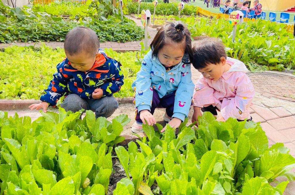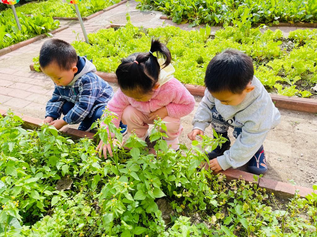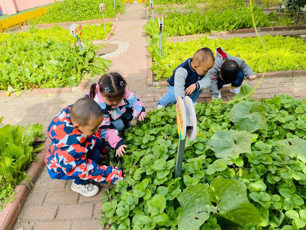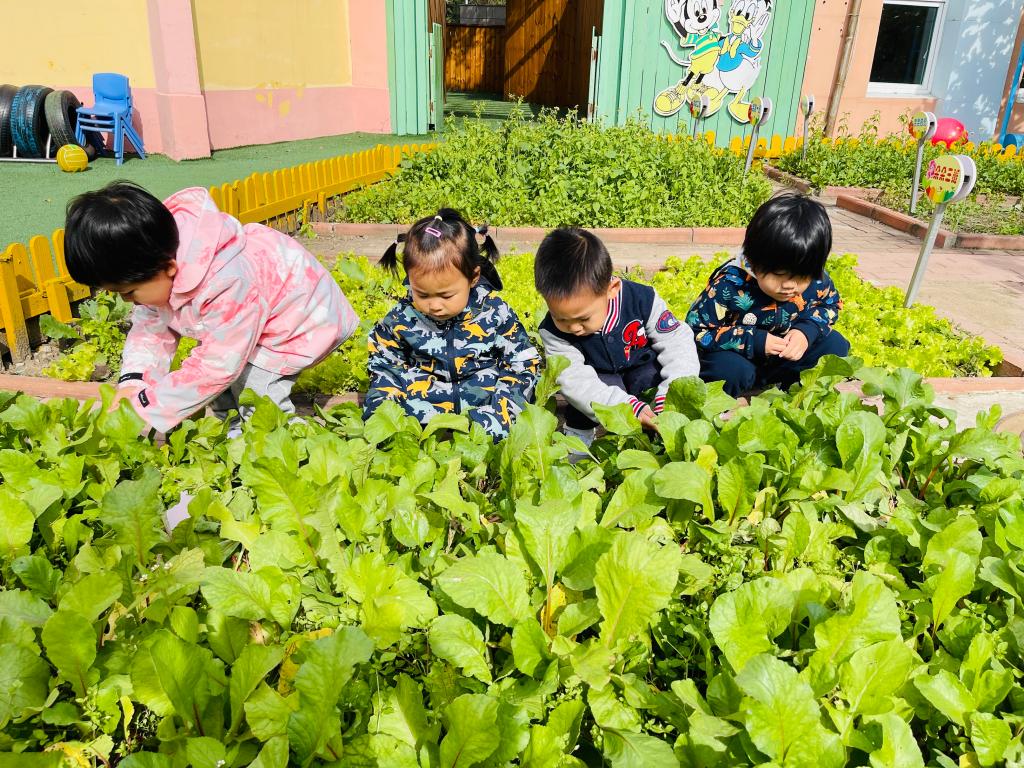 陈鹤琴先生说出:“大自然、大社会是活教材。”为了让孩子们体验丰收的快乐,在认真观察小菜园中的蔬菜后,孩子们尝试自己采摘蔬菜,体验收获的喜悦。