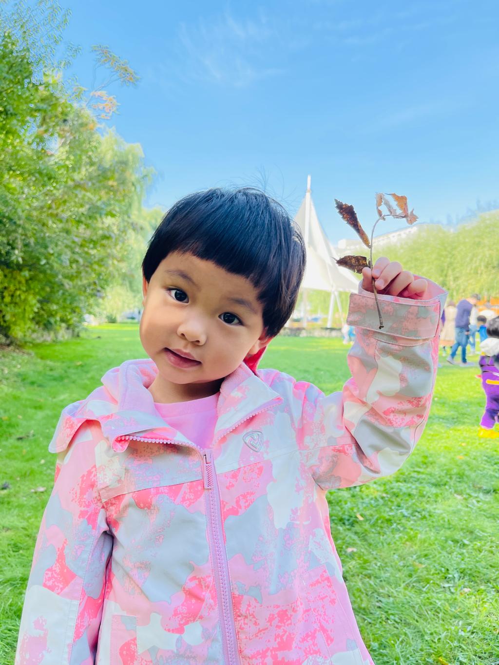 入园一个月后,孩子们已经逐步适应并喜欢上了幼儿园的快乐生活,每一天都在成长进步。今天是小小班孩子第一次放开妈妈的手,在老师们和同伴们的陪同下,走进大自然去发现、去探险。小眼睛左右看看,对周围的景象充满了好奇。“呜~”小火车到站了!孩子们开始在草地上嬉戏、奔跑感受秋天,美景尽收眼底。他们快乐的去捕捉秋天的景象,捡起落叶,发现小草,认真观察周围的花草树木。