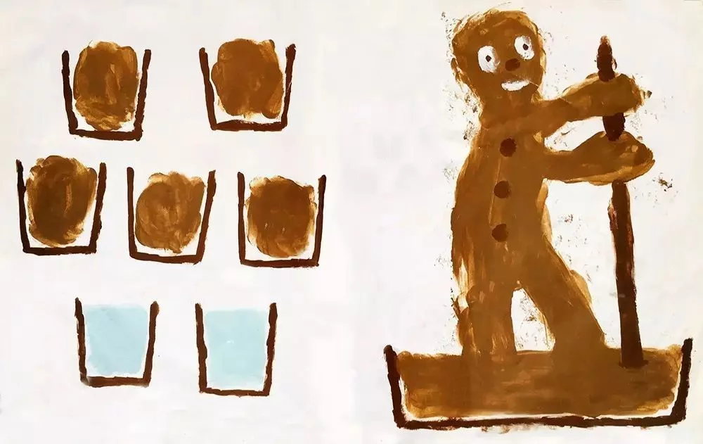 陶思源说:“两个小泥人一起玩泥巴球,打来打去!”
