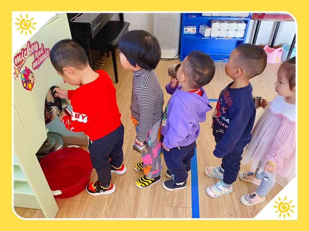 喝水的益处多多,看!我们已经养成良好的喝水常规喽!喝水时间到!