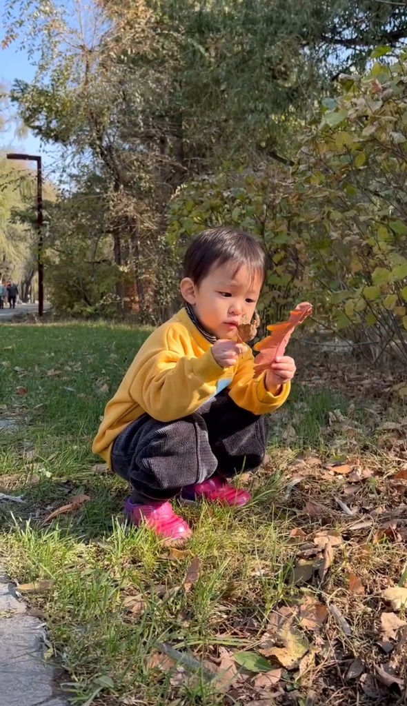 陈鹤琴先生指出“大自然、大社会都是活教材”。陶行知先生认为,应解放儿童的大脑、时间和空间,不拘泥于游戏的范围与形式,要让幼儿在宽广的环境中快乐游戏。豆豆五班萌娃在自然中奔跑,在自然中探索,快乐的笑脸和秋日暖阳交相辉映,共同编织成一段美丽的秋日童话。