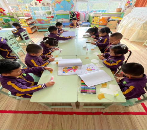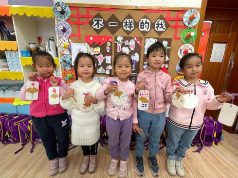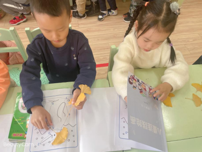 小朋友们来到银杏树下,拾起自己喜欢的银杏叶,拿回班后放到自己的图画本里夹平整备用。