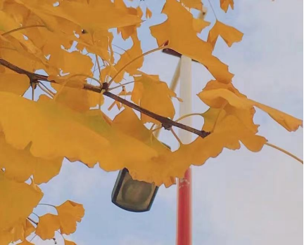 东北师范大学的校园里有着一片银杏树,它们呈正方形分布,在化学学院前面的一片绿地上,笔直的竖立着,四季有着不同的颜色.秋天,是银杏最美的季节,好像大自然的调色盘。叶子起初是绿中带黄,接着是变成黄绿色,到了深秋,满树都变成了金黄色,黄灿灿的叶子在阳光的映照下,发出了耀眼的光芒,一阵风吹过,那光芒就在树叶间跳动,仿佛小精灵在欢快的玩耍。