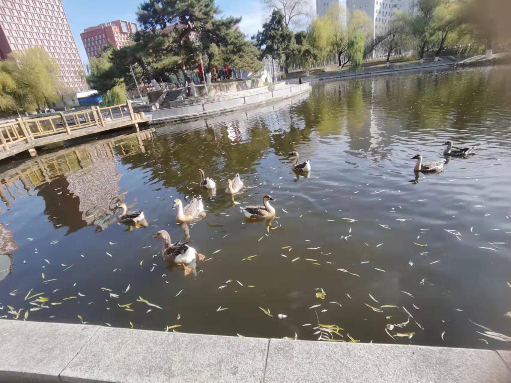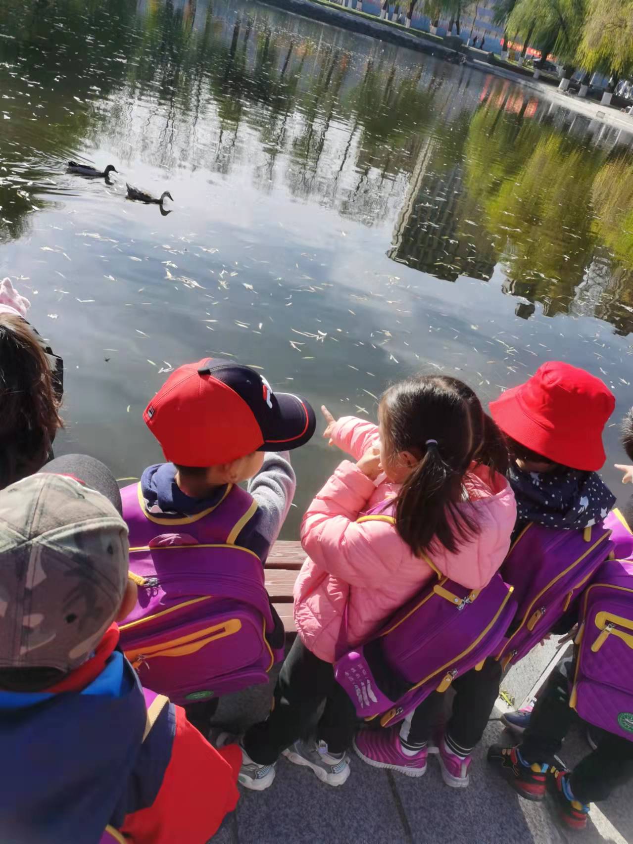 “我发现静湖里面有鸭子,我经常拿馒头去喂鸭子。”