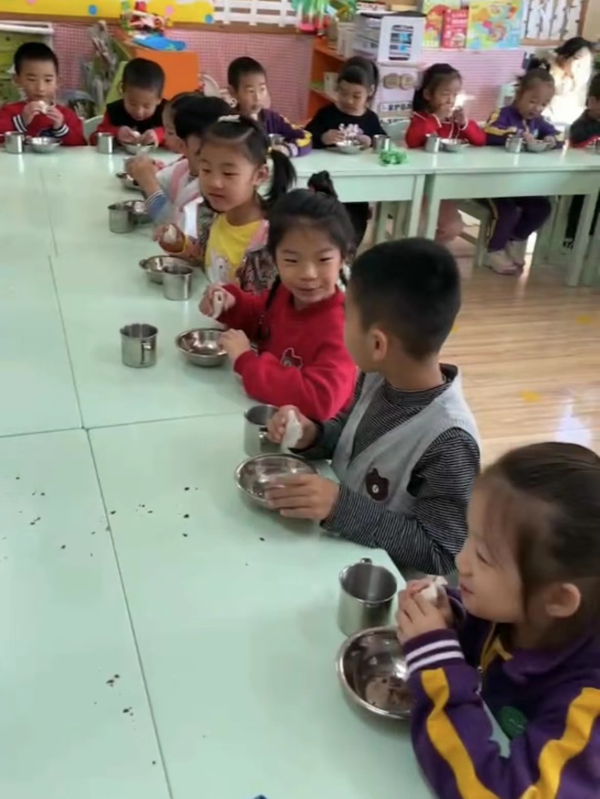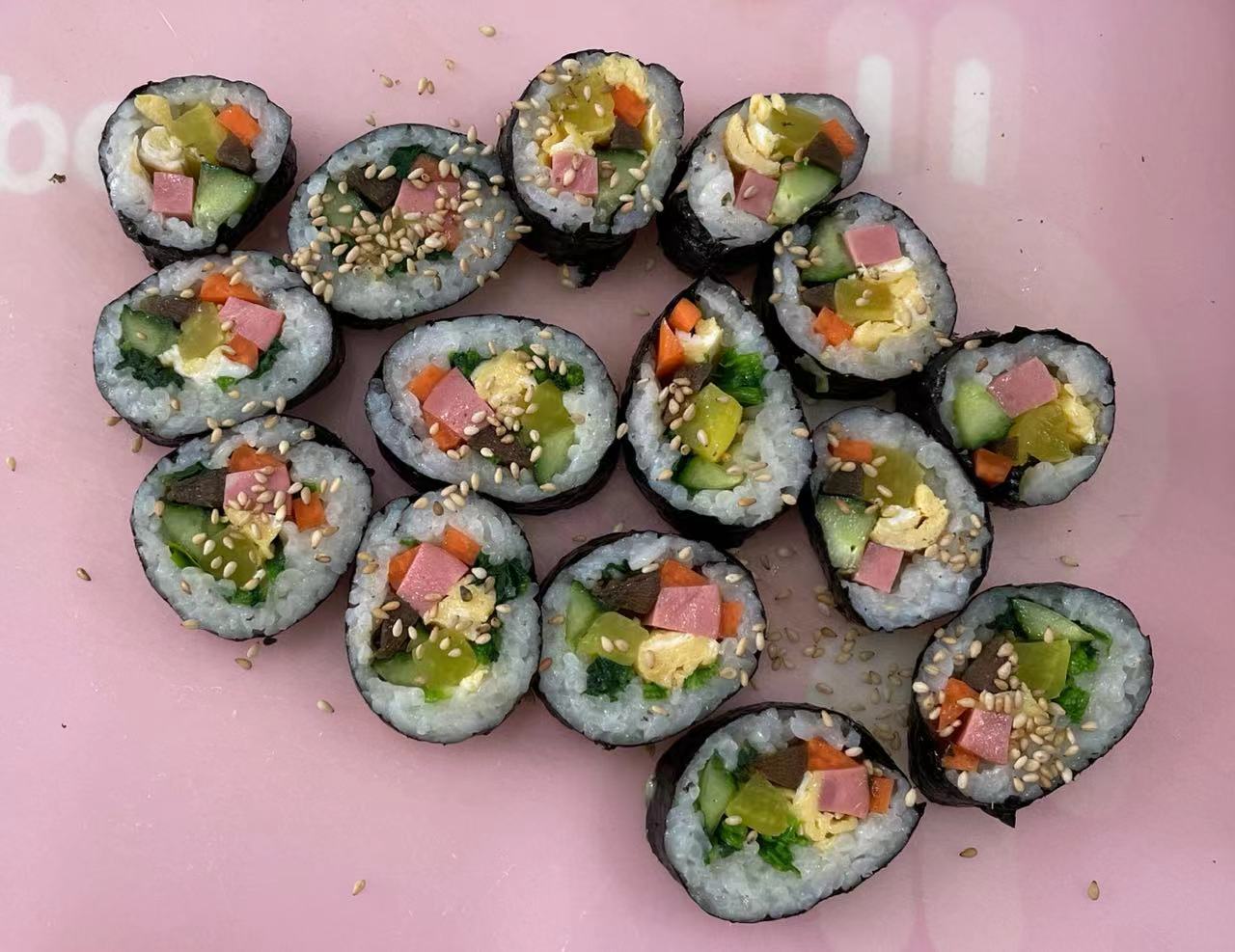 瞧!小朋友们的紫菜包饭都做好啦!看起来很美味哦!自己动手做美食实在是太有趣啦!颜值高、味道好,小可爱们已经迫不及待想要尝上一口了。孩子们在亲手制作美食的过程中充分享受了视觉的欢愉、味觉的快乐,更懂得了"一米一粟,来之不易"的道理。也在活动中学会了合作、交流、分享。