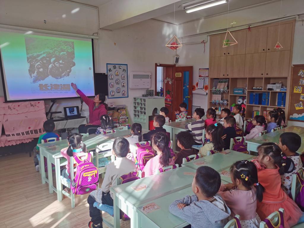 《3-6岁儿童学习与发展指南》中指出:“5-6岁幼儿知道自己的民族,知道国家一些重大成就,爱祖国,为自己是中国人感到自豪。”“能感受到家乡的发展变化并为此感到高兴。”于是,我们的晨间谈话内容围绕“长津湖”而展开。