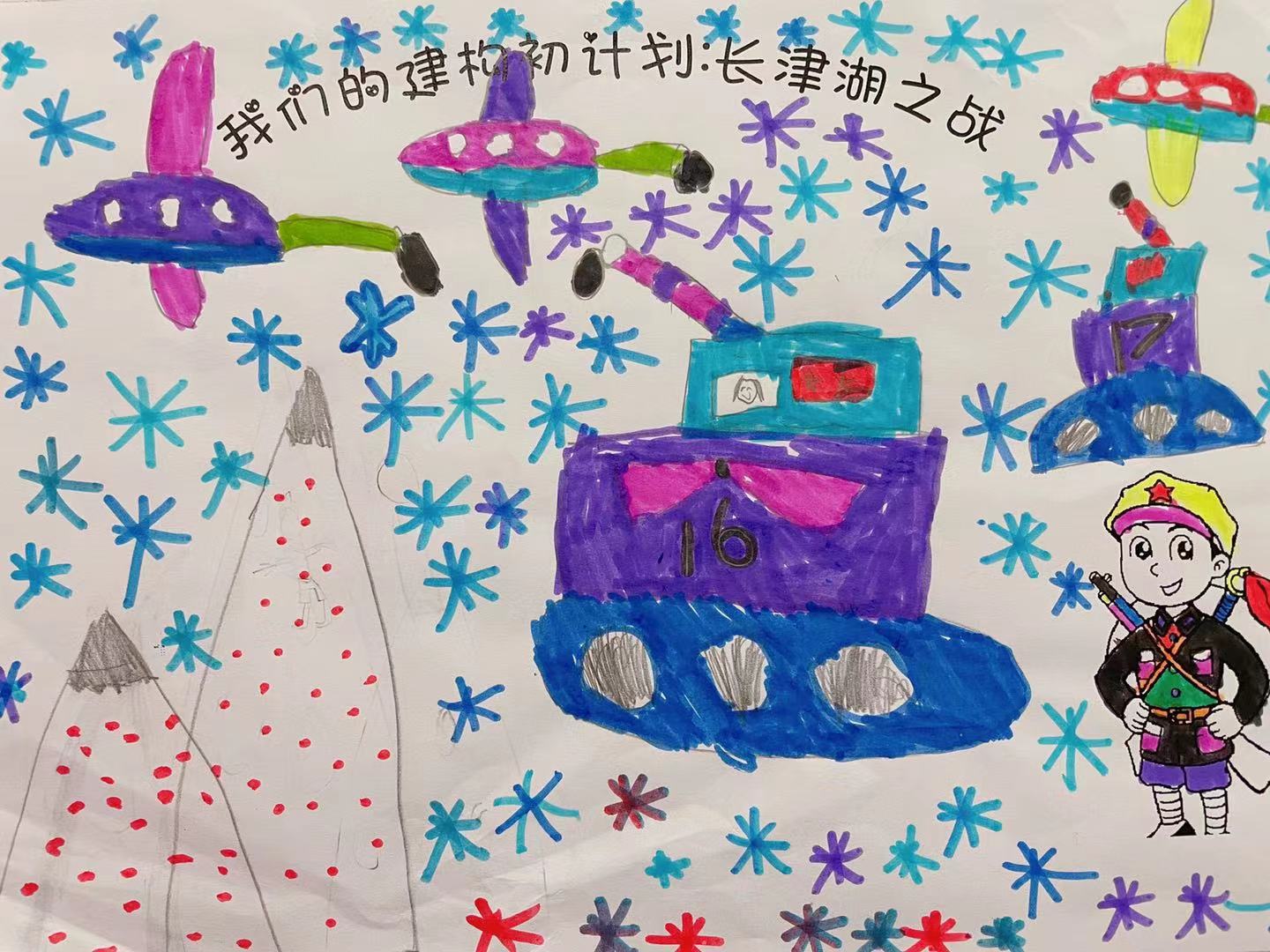 孩子们尝试用自己的画展现出雪山里中美双方对战的激烈场景。