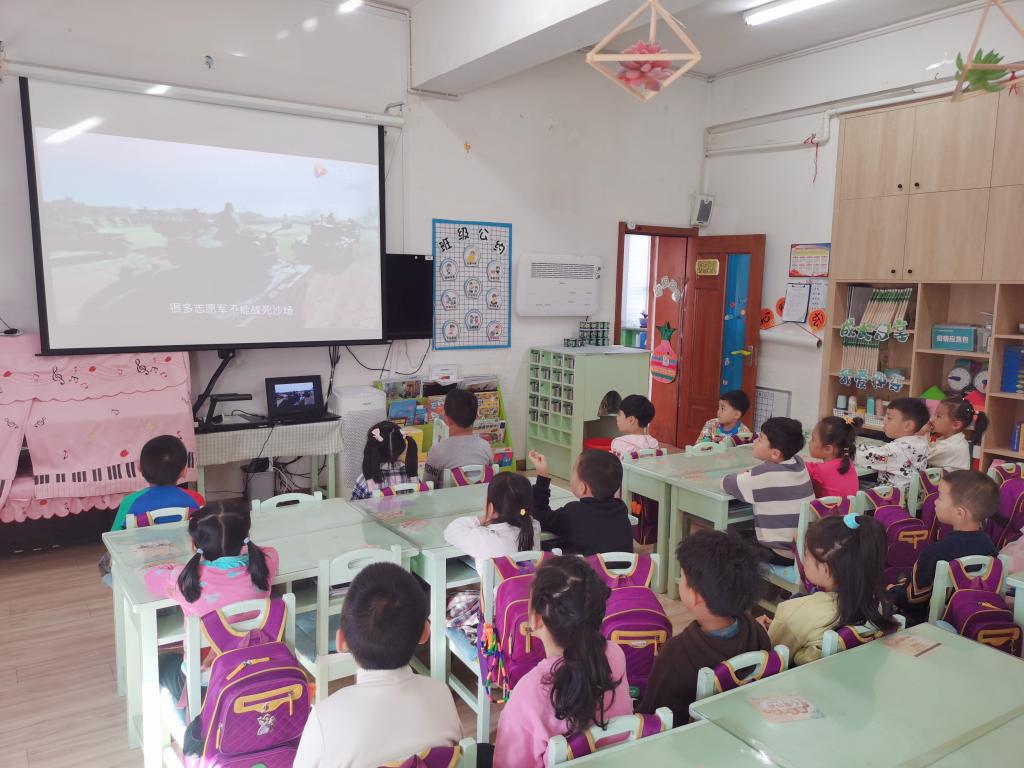 孩子和老师一起了解了《长津湖》这部电影的历史背景。