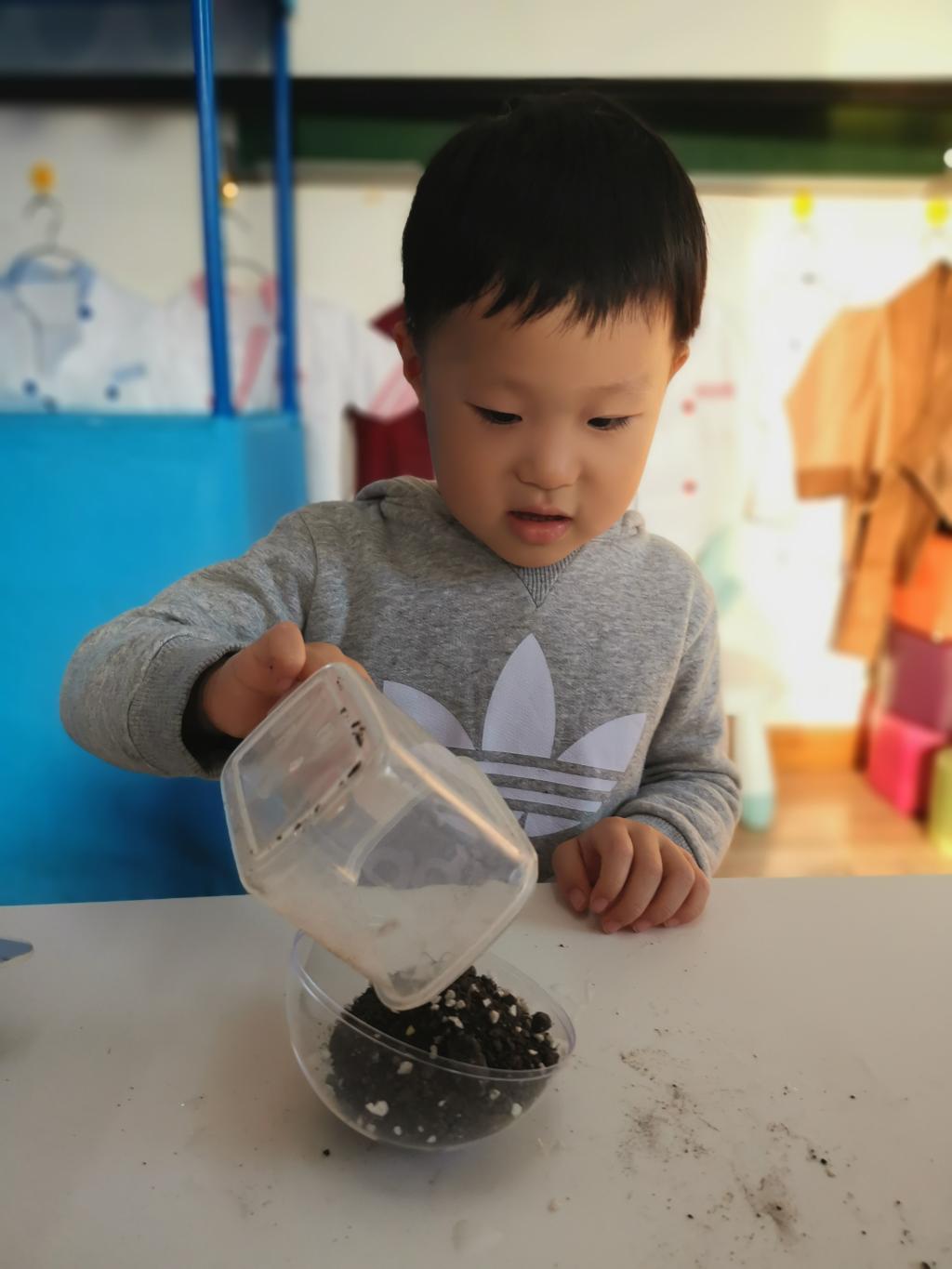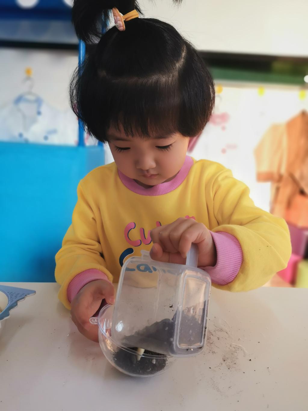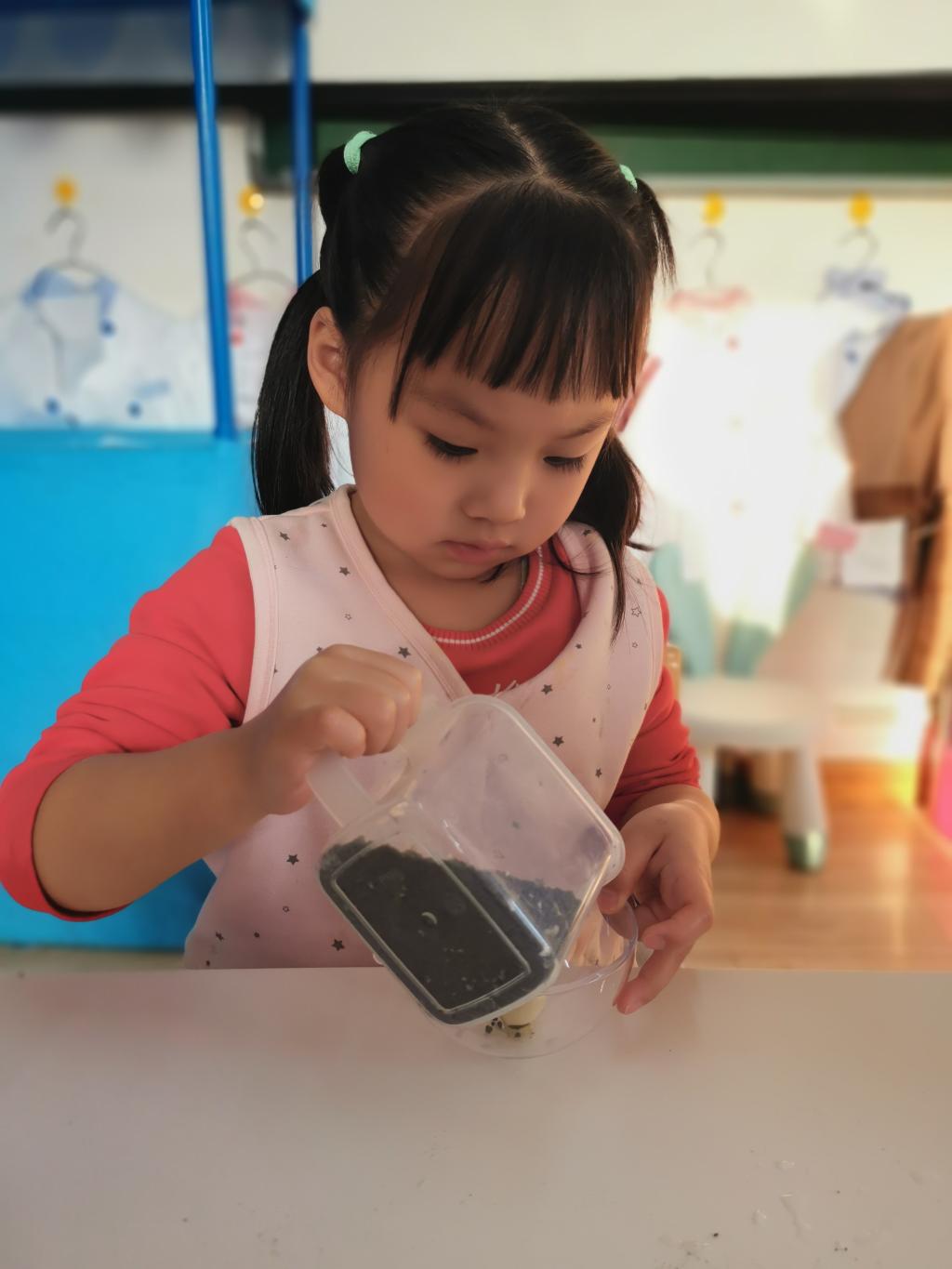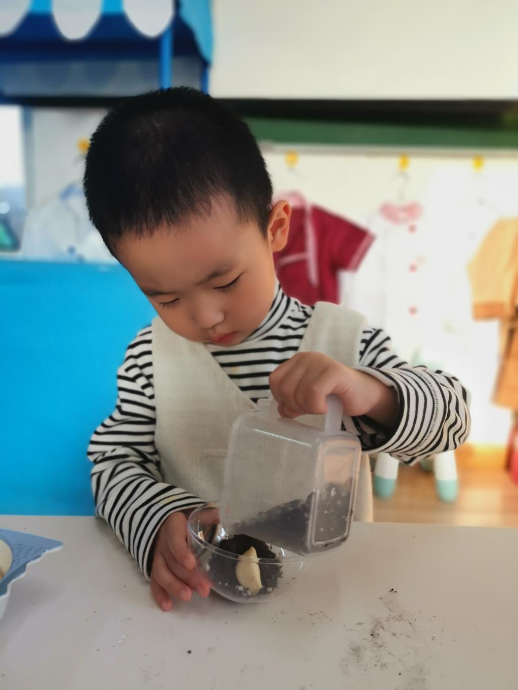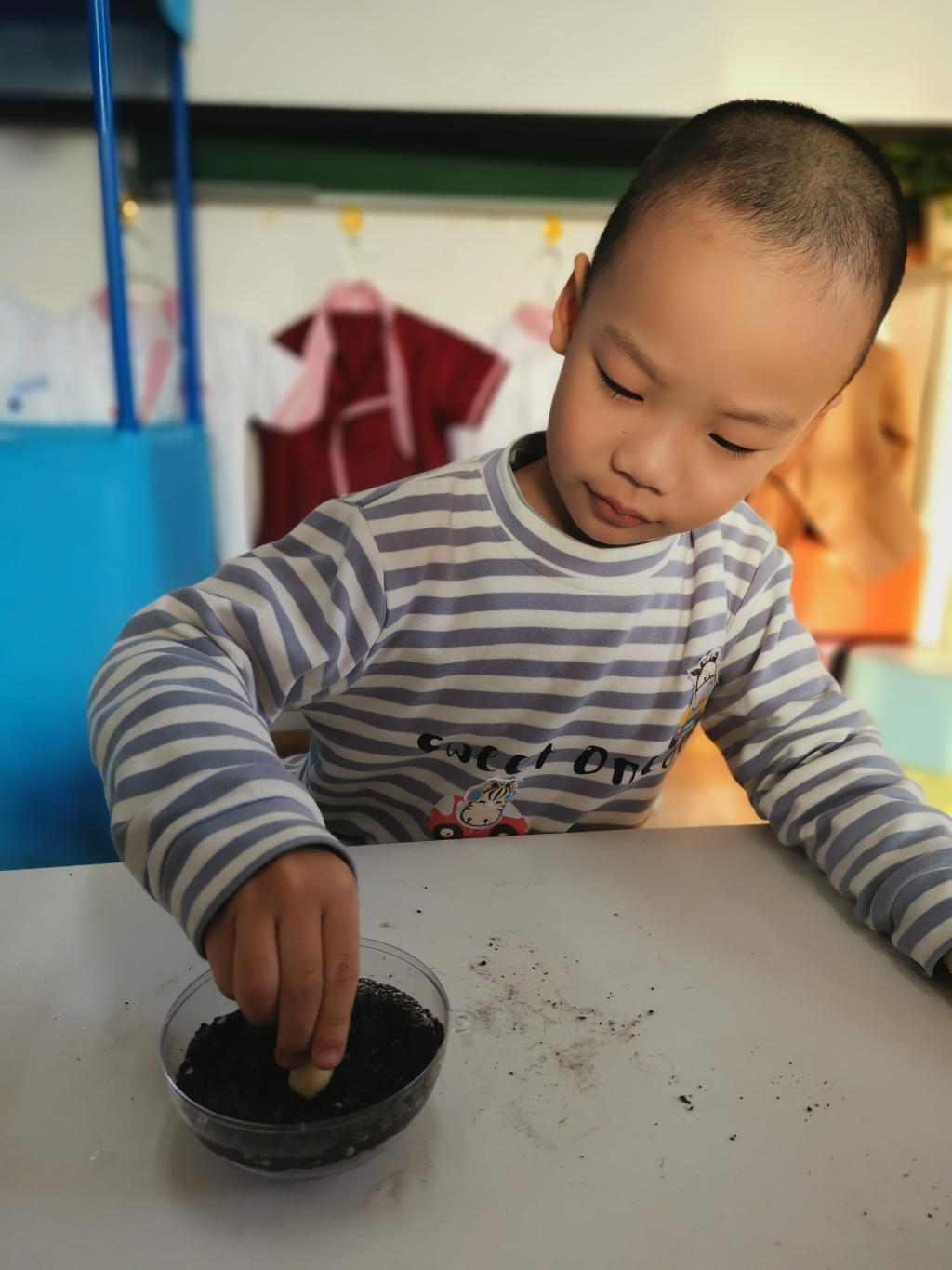 每一位宝贝都十分的专注和小心,生怕伤到自己的蒜宝宝。尽管宝贝们的手上沾满了泥土和水渍,但是在种植中体验到了劳动的快乐,也促进了宝贝们对大自然观察和探究的兴趣。