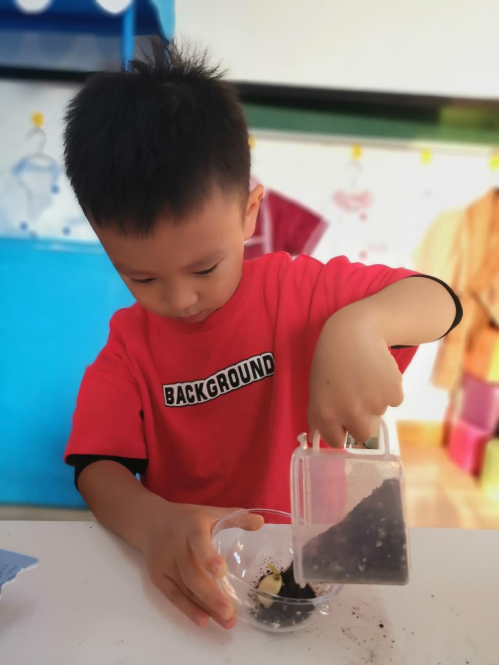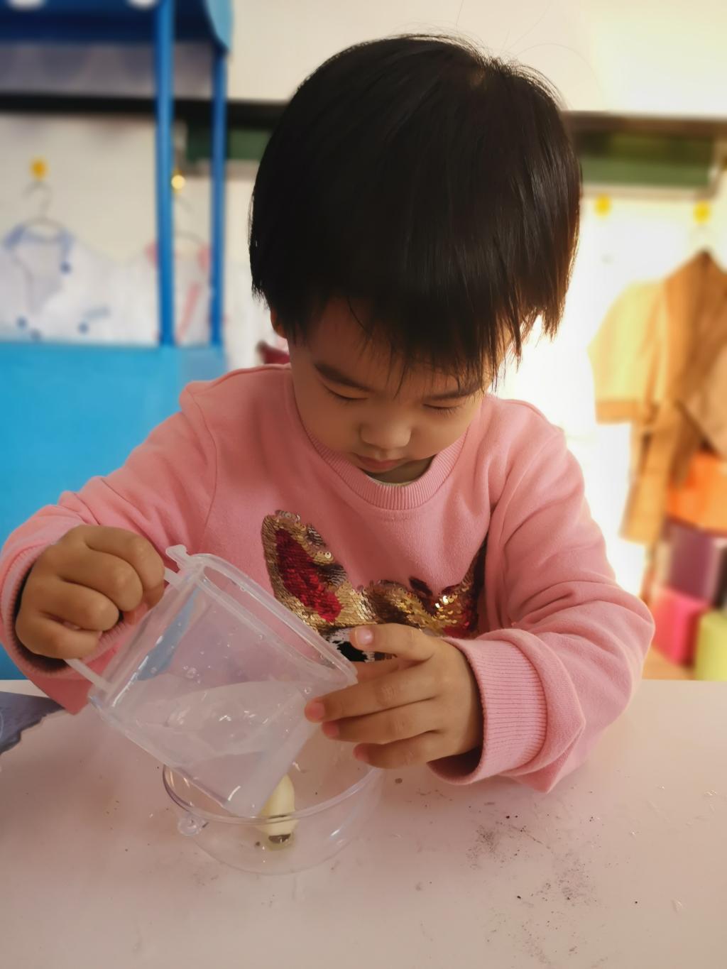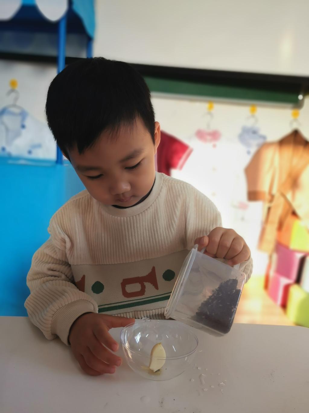 通过之前的了解,宝贝们对蒜宝宝的探究热情只增不减,于是宝贝们亲手种植蒜宝宝的活动开始啦!