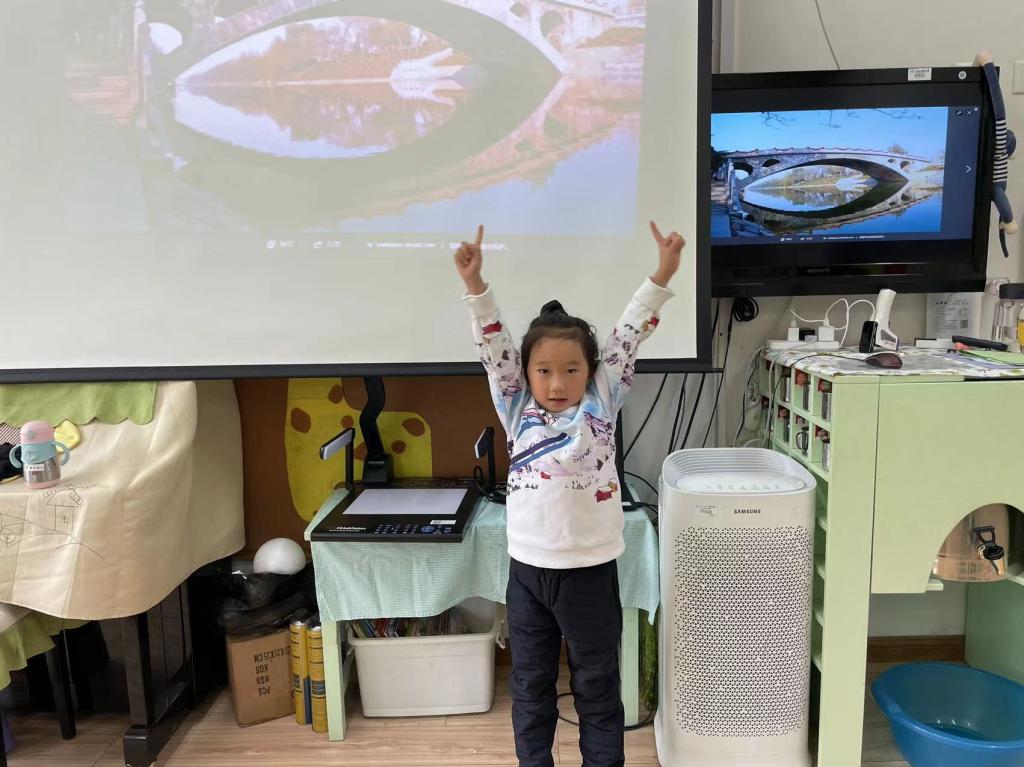 孩子们通过讨论一起收集资料,了解了“为什么桥下是空的?桥上能通车走人,承担很大的重量?”还知道了承重和稳定程度都很强的赵州桥,是世界上现存年代久远、跨度最大、保存最完整的单孔坦弧敞肩石拱桥。