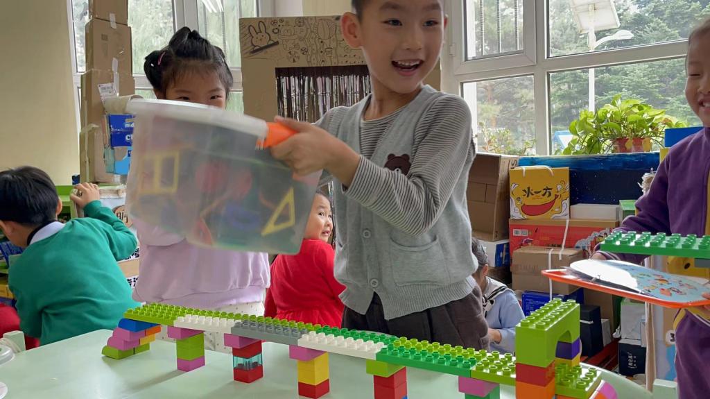 孩子也想尝试一下能不能建构出一座坚固的桥,看看这座桥能承担多大的重量。