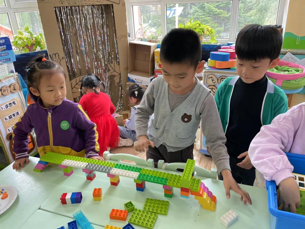 经过本次的建构活动,小朋友们了解了“桥”的整体构造,学会根据简单的平面图进行建构,并能大胆大胆地向同伴和老师介绍自己的搭建方法和成果。这不但提升了他们的建构技能、空间能力、观察能力,同时在建构交流的过程中,发展了社会合作能力,学会分享与合作尝试,体验成功与挫折,充分体现了东师附幼小朋友“有兴趣、能专注、喜探究、愿合作”的学风品质。
