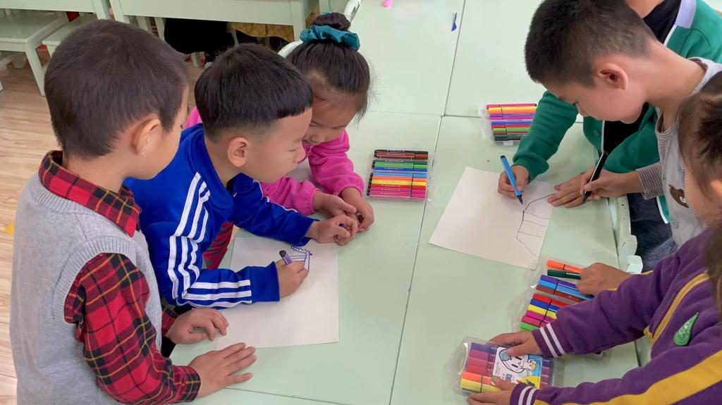 区域游戏的时候,孩子们开始了建构,大家首先在图纸上画出桥梁的模型,只要今天的桥能成功承担一个小朋友的重量就算成功。