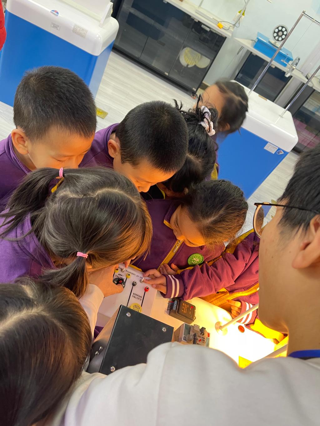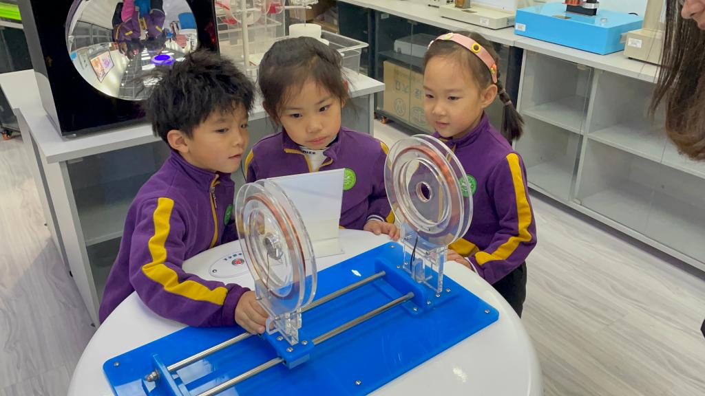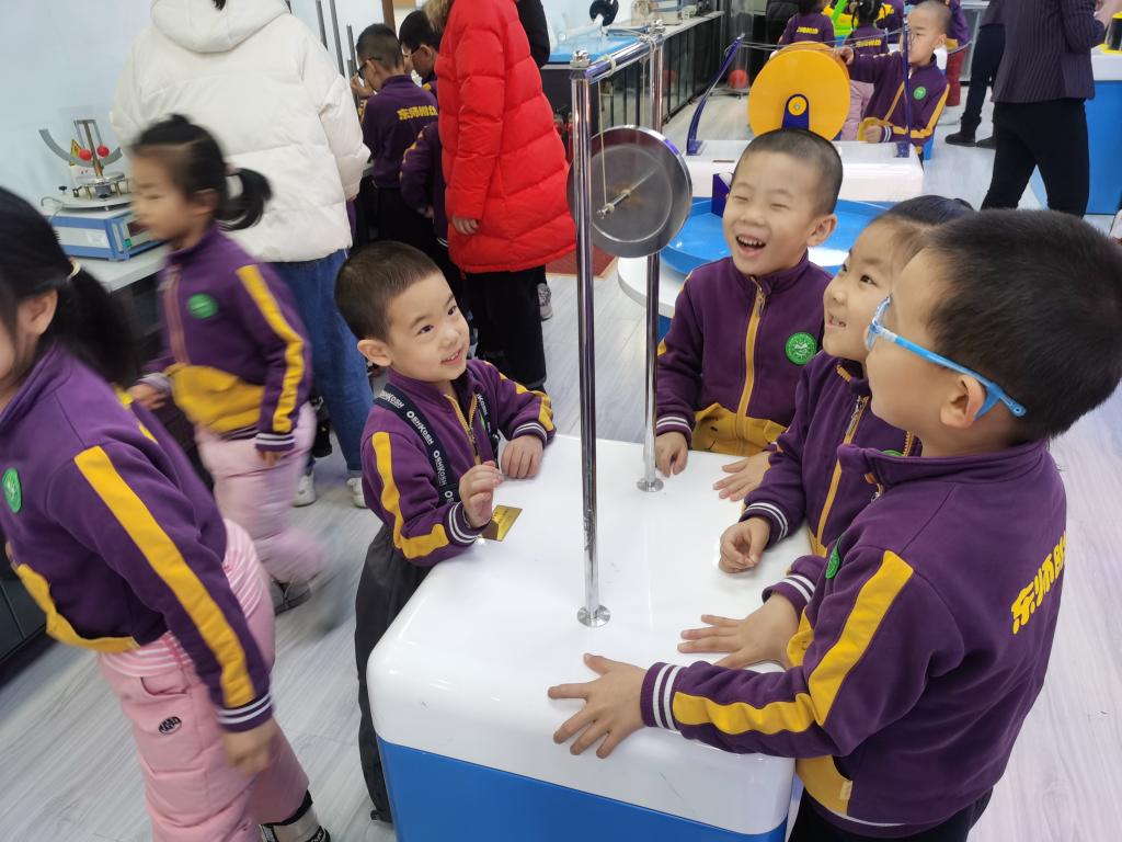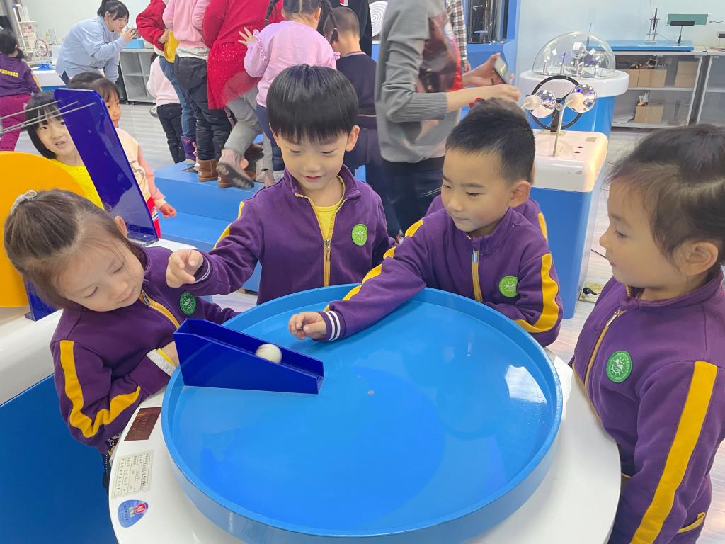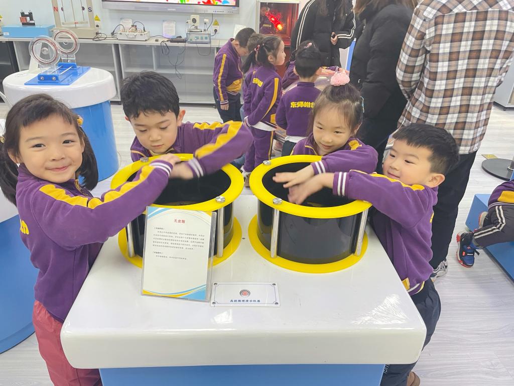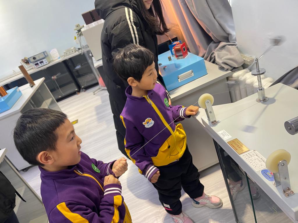 我园秉承“创造的教育”理念,培养孩子们“有兴趣,能专注,喜探究,愿合作”的良好学习品质。科学学习一定是兴趣为先,基于兴趣的指引,专注地观察和操作体验,方能达到探究能力的不断提高。果果组走进物理学院科技实验室,孩子们通过观察、比较、操作、实验等方法,不断发现问题、分析问题和解决问题,积累了许多科学经验。孩子们亲近科学、喜欢科学、走进快乐的科技世界,探索身边的物理奥秘,在互动和玩耍中体验物理世界的奇妙和乐趣。