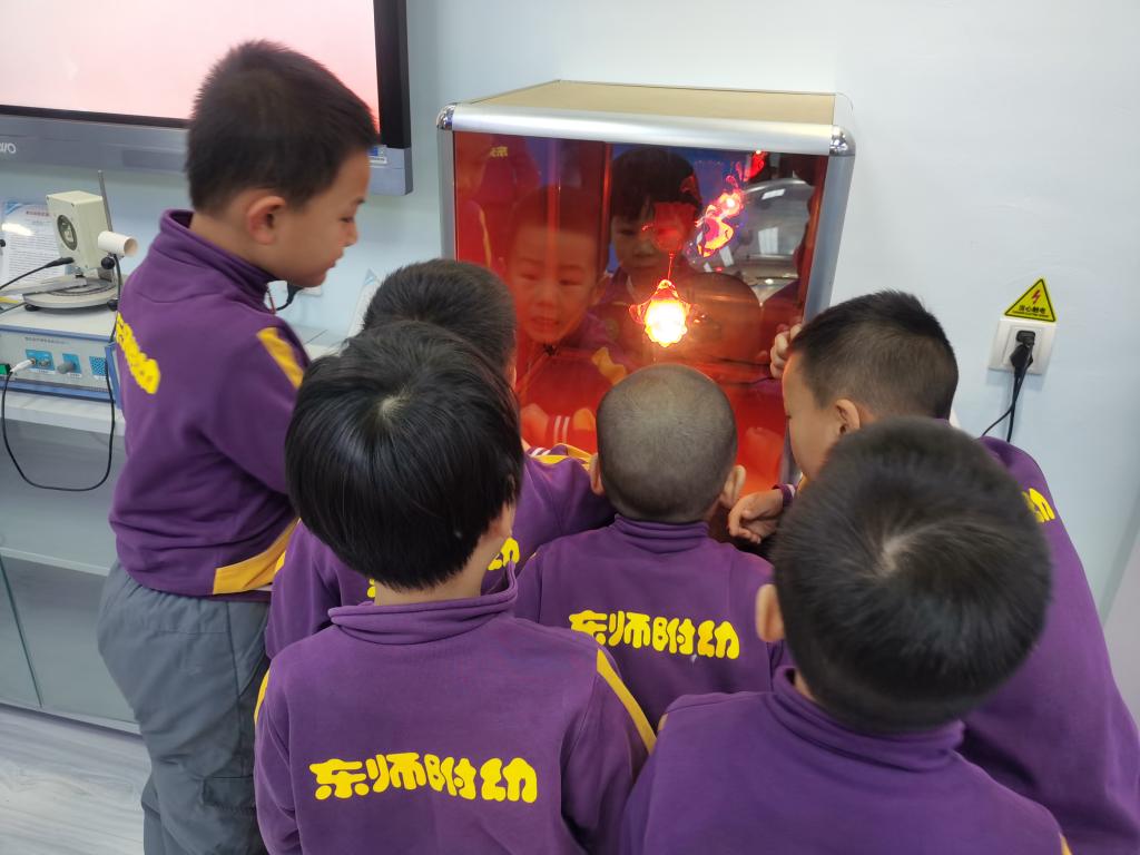 “科学学习的核心是激发探究欲望,培养探究能力”。为了进一步引领幼儿走进科学、了解科学,激发幼儿对周围事物和现象的探究欲望,值此东师附幼“我发现,我探索,我创造”科技节开展之际,果果组充分依托大学教育资源,走进物理学院实验室,在互动和玩耍中体验物理世界的奇妙和乐趣。