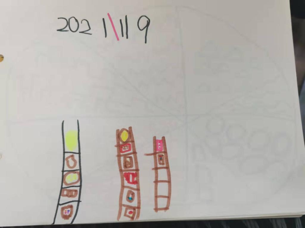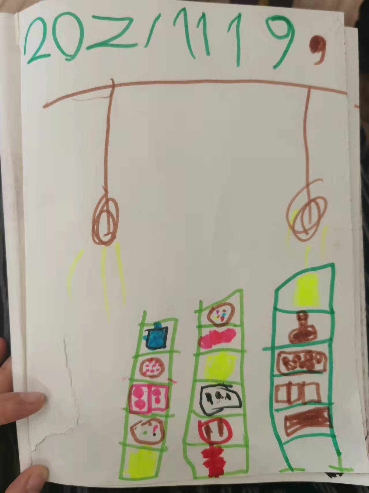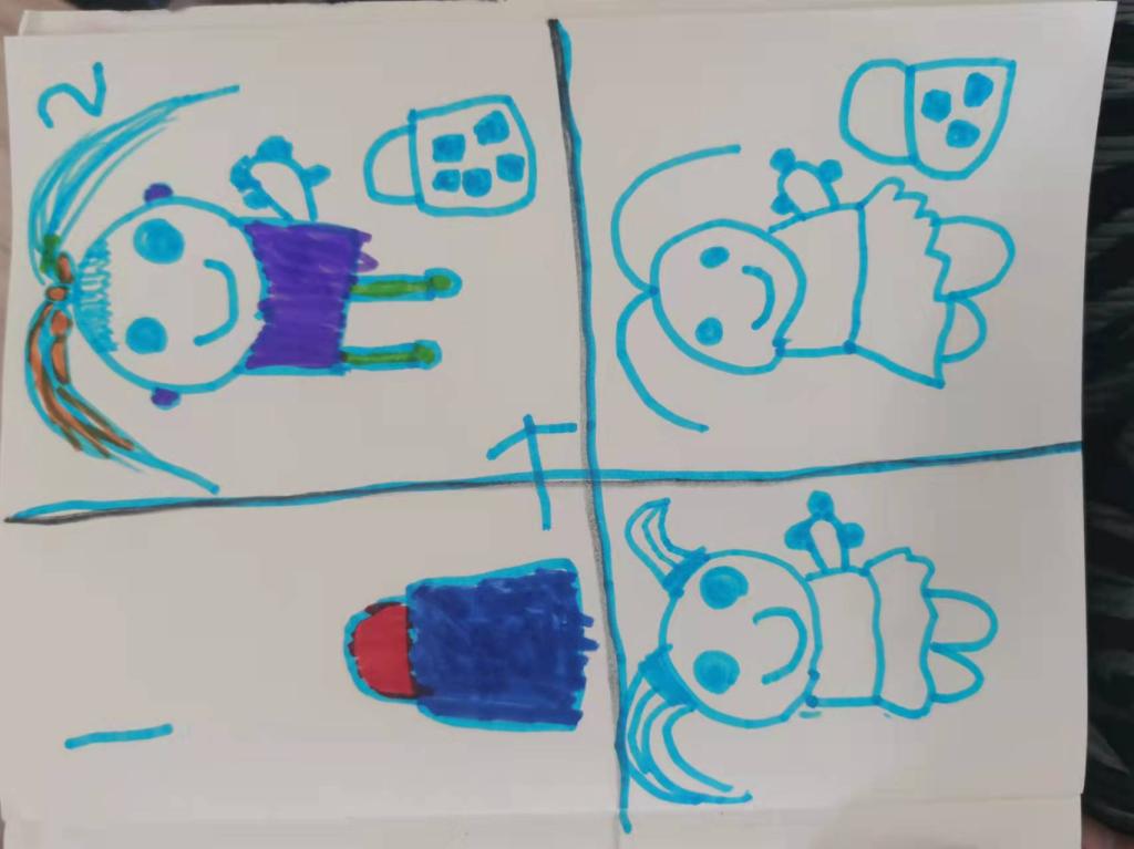 从超市出来,孩子们拿着买到的好吃的,美滋滋的回到了幼儿园,午饭后孩子们画下了两个问题的答案,他们在悄悄的讨论着,“下次去,我就买个面包,”“我要买养乐多,”“老师说了,今天去要看价格,下次去带10块的话,你能不能买到好吃的,需要记住价格,然后算一算。”