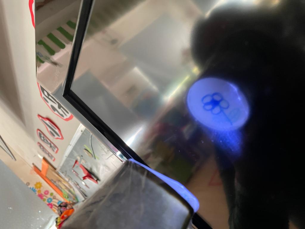 最后,在光线暗的房间用手电筒照亮。投影仪做好啦!