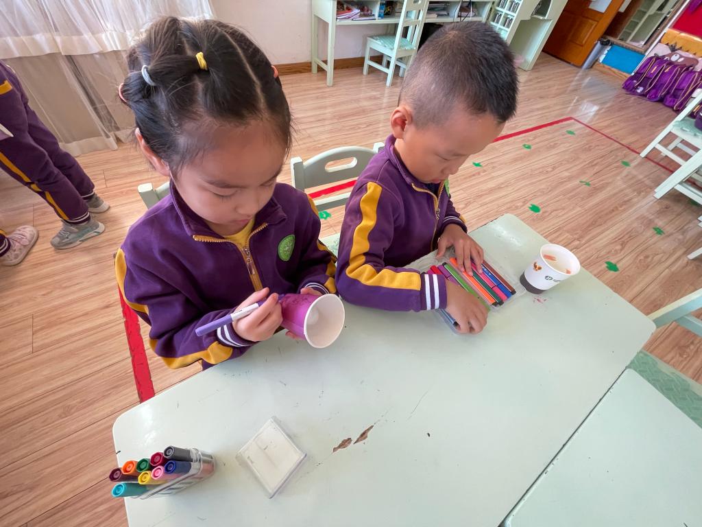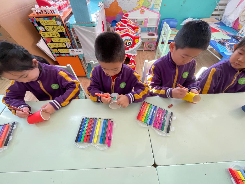 首先,把纸杯的的底部去掉,纸杯外部装饰自己的喜欢的图案。