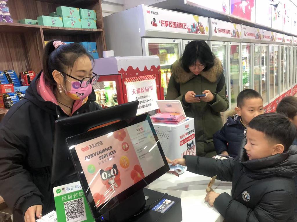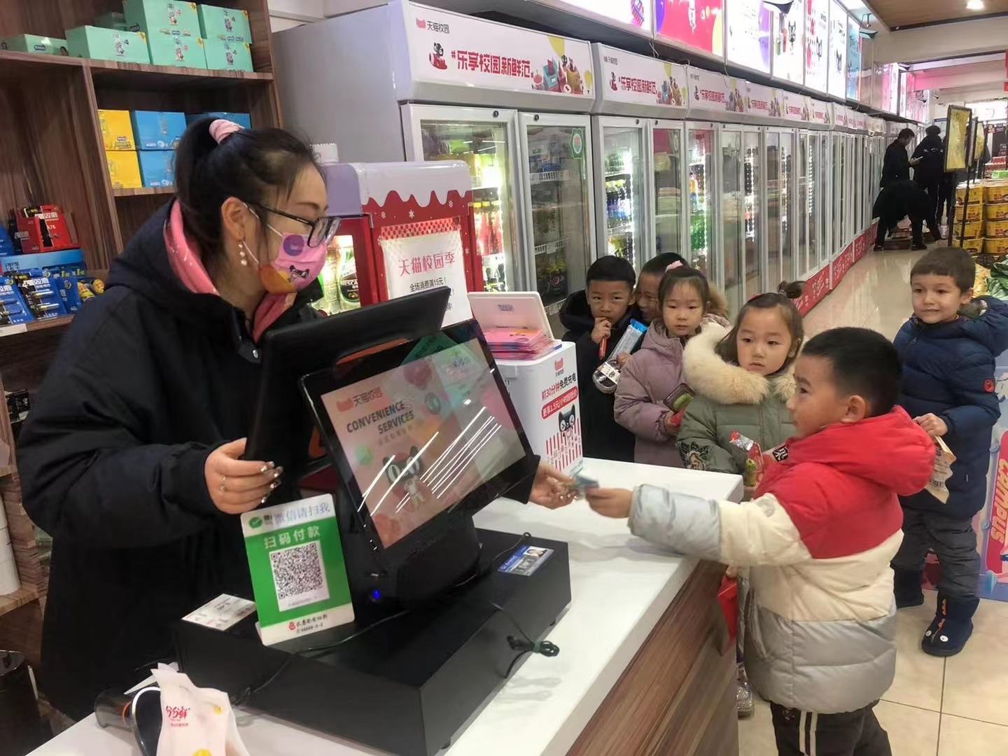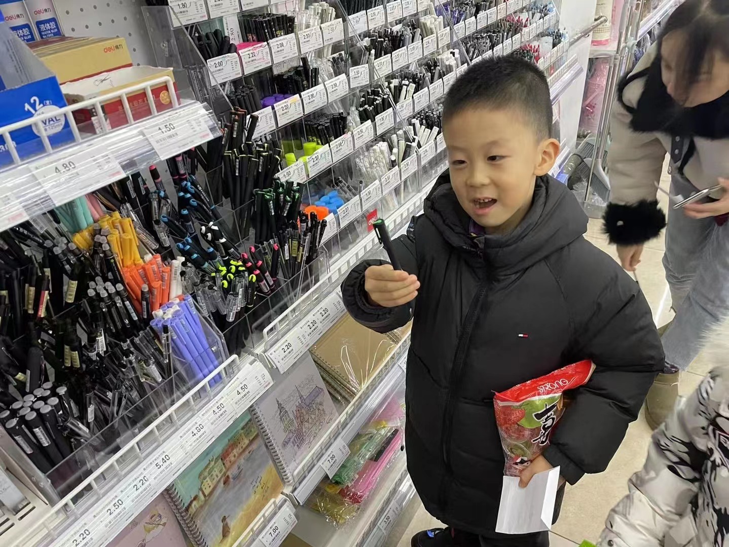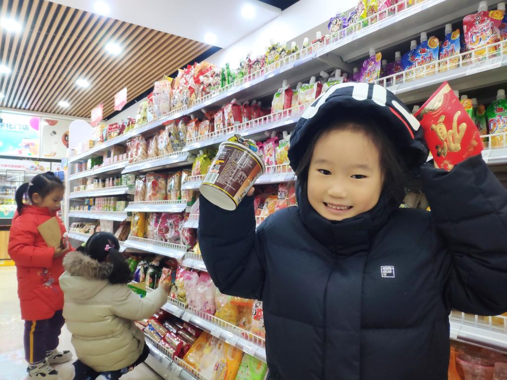 在结算时,孩子们会主动拿好自己的东西,礼貌地向工作人员道谢。