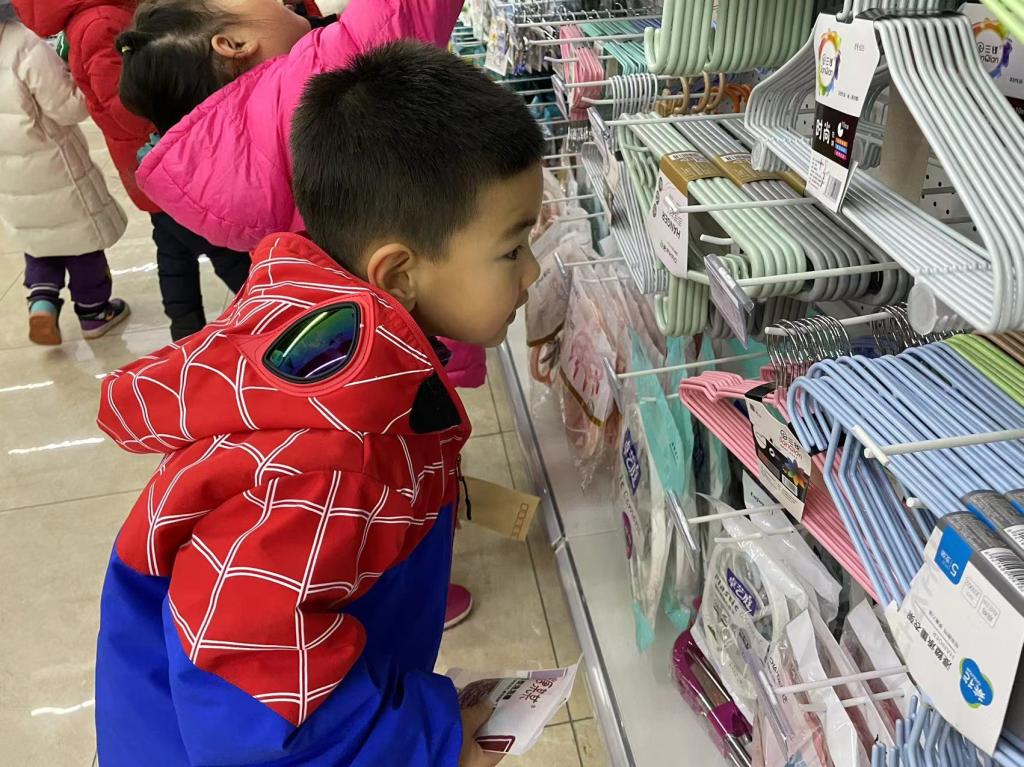 在老师的带领下,孩子们兴致盎然且有序地参观食品区、生活用品区、文体区等;孩子们仔细观察了超市里各种各样的商品,知道了超市里每一个物品都有自己的位置,它们都整整齐齐地排列在高高的货架上,并有价格签的标注,各种各样的区域组成一个种类齐全的超市。