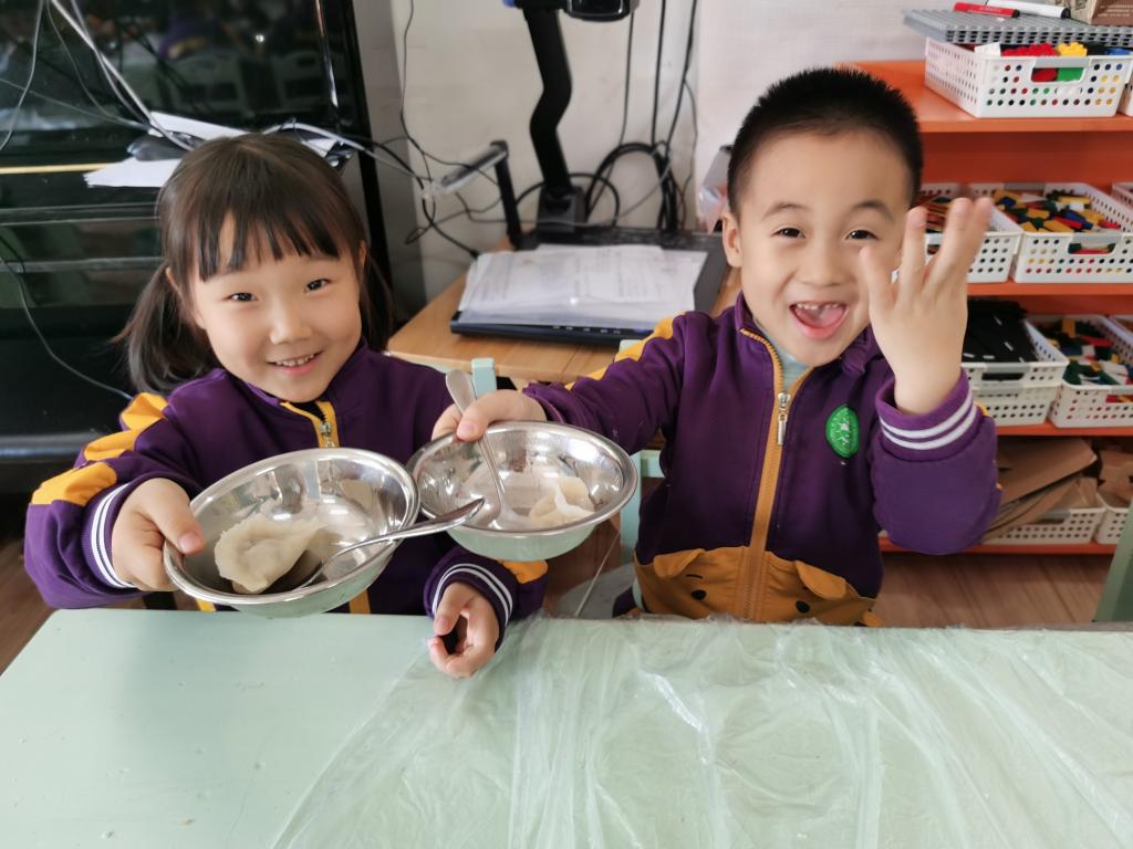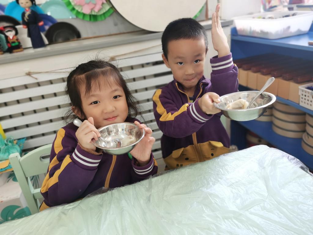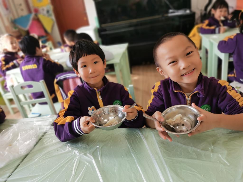 “饺子出锅喽!”孩子们看到热气腾腾的饺子,每个人脸上都露出了喜悦的笑容。这是孩子们第一次在幼儿园体验包饺子,他们不仅仅感受到成功的喜悦,还有合作的快乐!让我们为孩子们第一次成功点赞。