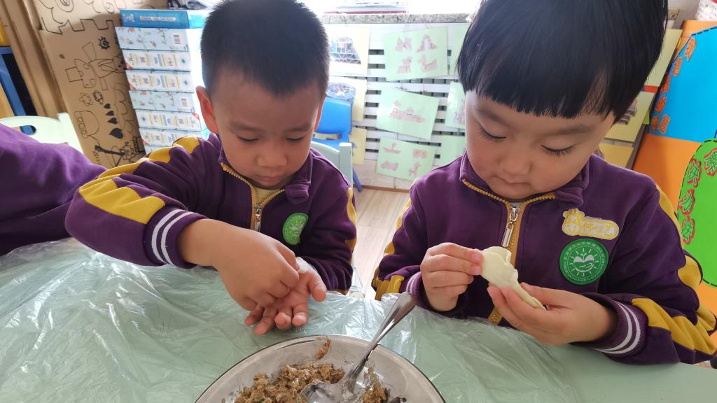 为了帮助孩子们了解中国传统习俗,培养幼儿的动手能力,体验劳动的快乐,果果五班小朋友们迎来生活体验养成系列活动---包饺子。