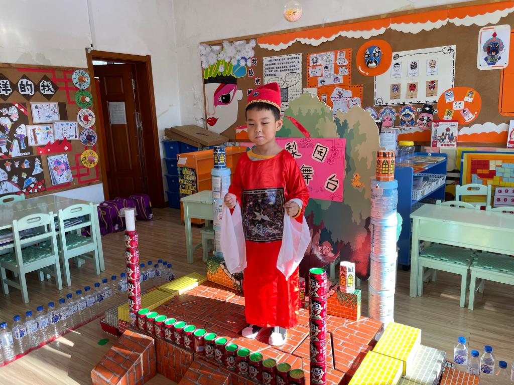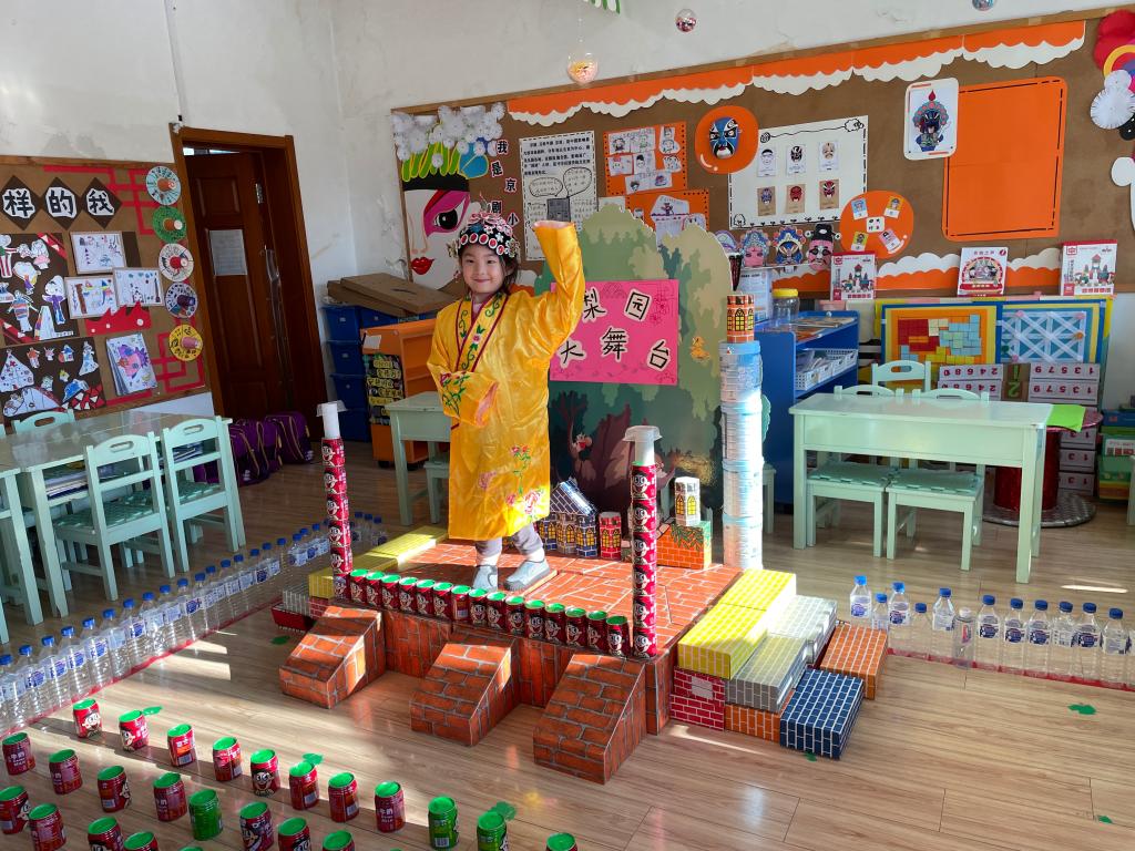 随着主题“我是京剧小达人”的深入,“梨园售票处”的开设,孩子们决定开始共同搭建“梨园大舞台”并进行表演。