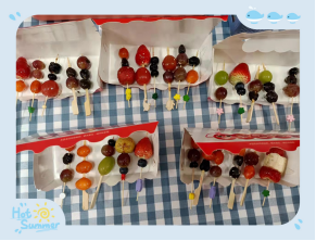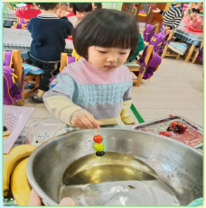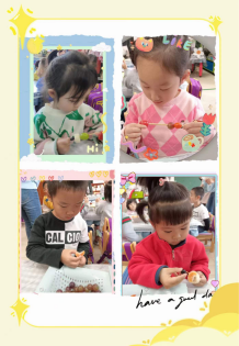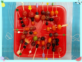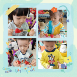 老师细心的指导孩子们串冰糖葫芦的方法,并讲解了安全注意事项。串糖葫芦可是个技术活,孩子们在老师的帮助下不仅把各种夹心串得牢牢的,连颜色也搭配的特别漂亮呢,一串串水果光是看着就让人流口水。