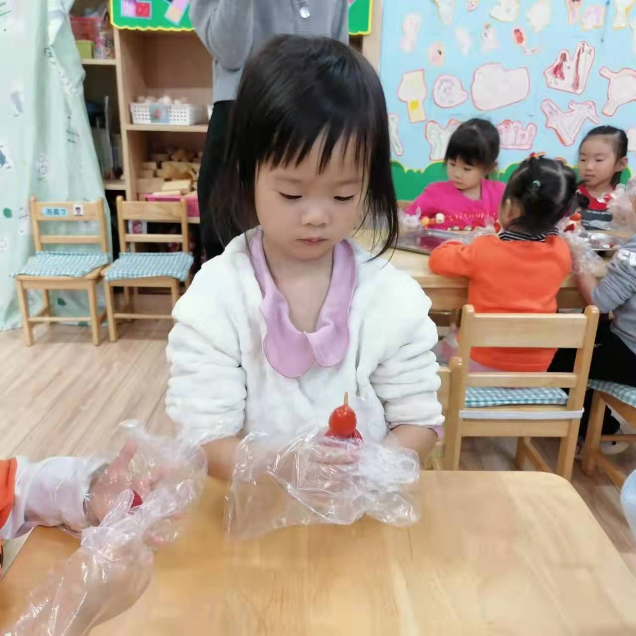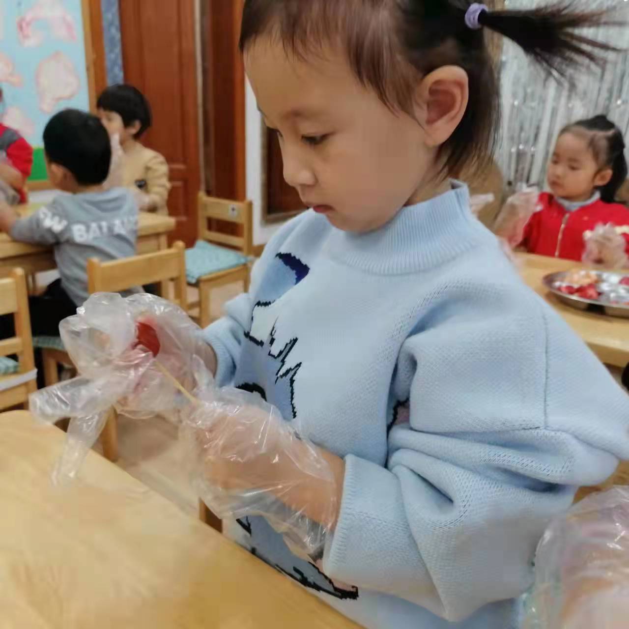 一串小小的糖葫芦带给了孩子们不同的学习体验。让孩子在学中玩,在玩中学。这不仅锻炼了孩子的观察能力、动手操作能力和语言表达能力,也在熬糖浆的过程中学会了耐心等待,知道了糖葫芦制作过程中的辛苦,更加的感受到了食物的来之不易,知道自己要做珍惜食物的好孩子。