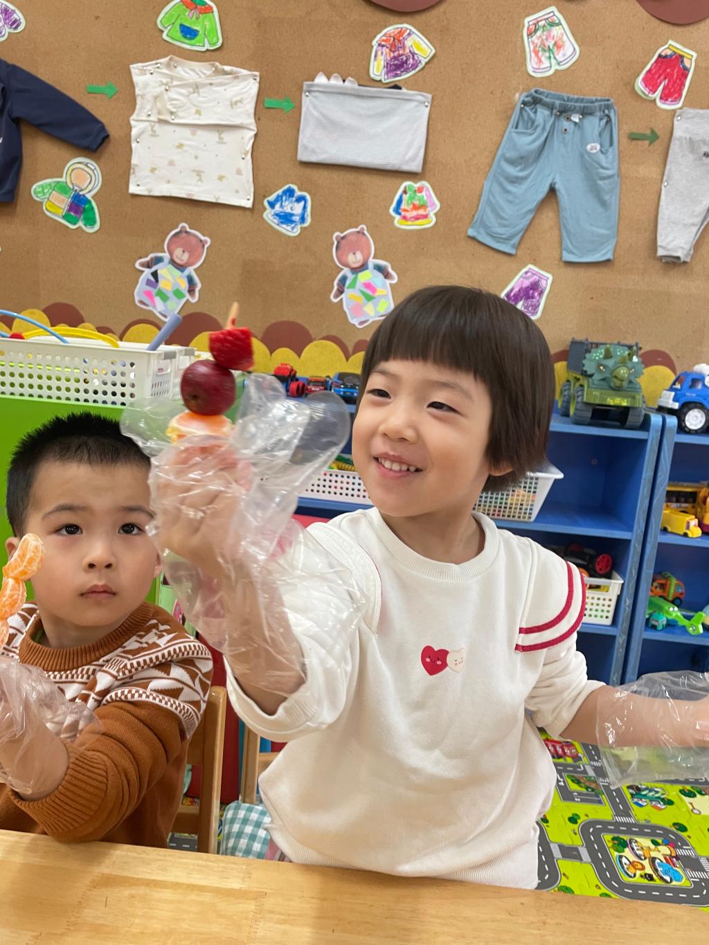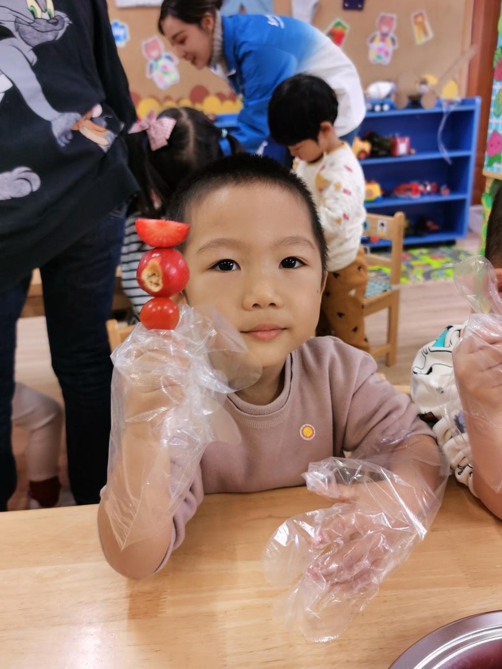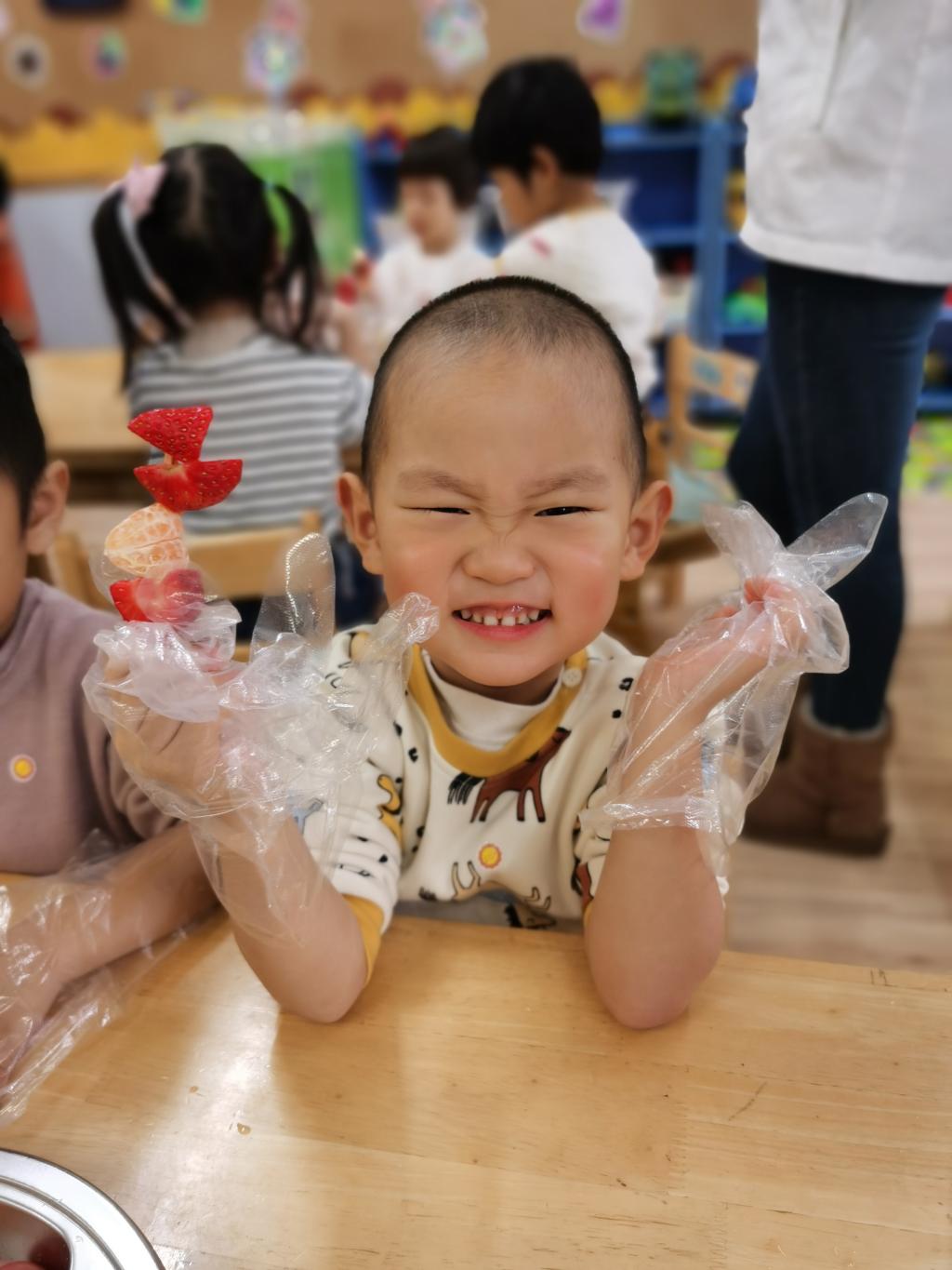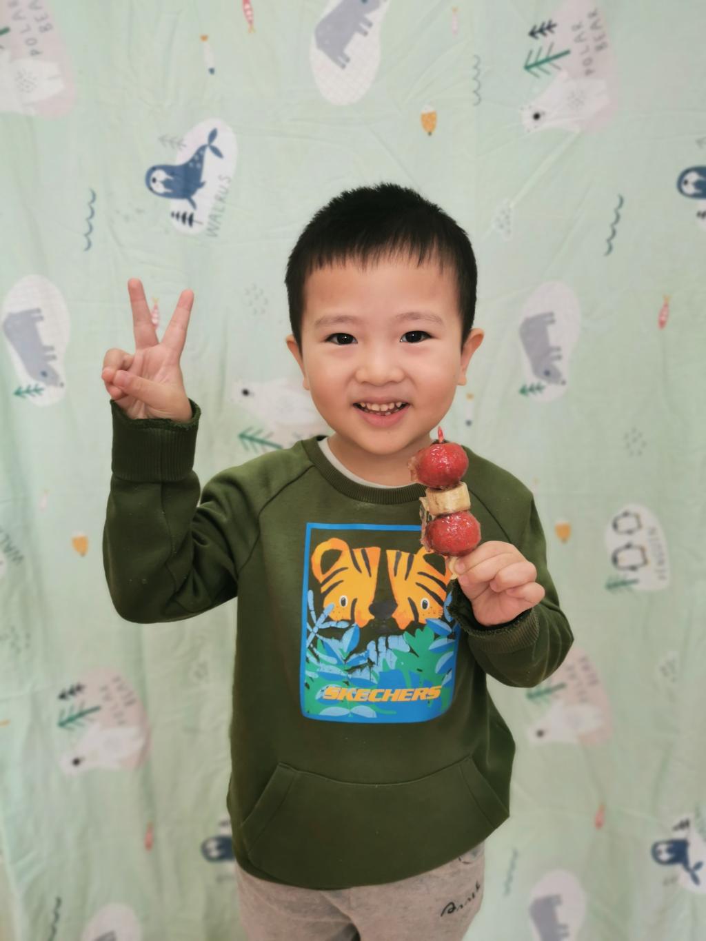 糖葫芦寓意红红火火、团团圆圆、甜甜蜜蜜,一直以来,凭着酸甜的口感、吉祥的寓意为人们所喜爱。每当提起冰糖葫芦,很多人就能回忆起自己的童年,那又酸又甜的味道,至今记忆犹新。对于孩子们来说,冰糖葫芦也是他们非常喜欢的食物。孩子们制作的过程中,不仅认识了不同的水果,同时体验了自己动手的快乐,忙的不亦乐乎。