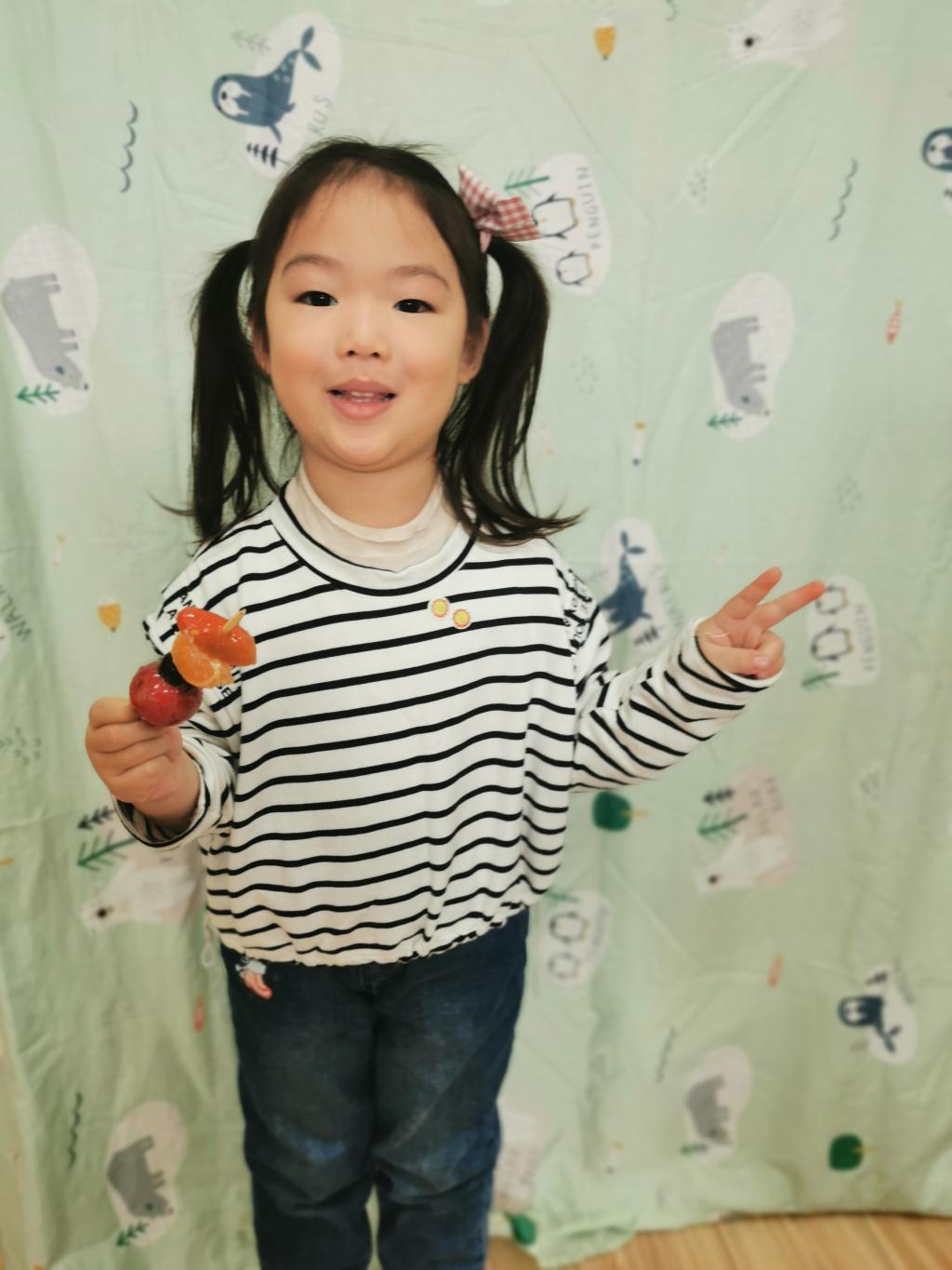 小朋友们仔细的观察着糖浆的变化,最后小心翼翼的将糖裹在了水果上面,一串串晶莹剔透的糖葫芦就做好了。“好甜呀!”“真好吃!”“这是我们自己做的糖葫芦。”孩子们都在分享着自己的喜悦,整个教室都弥漫着甜甜的味道。