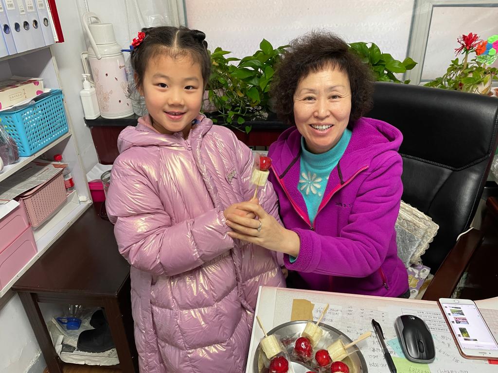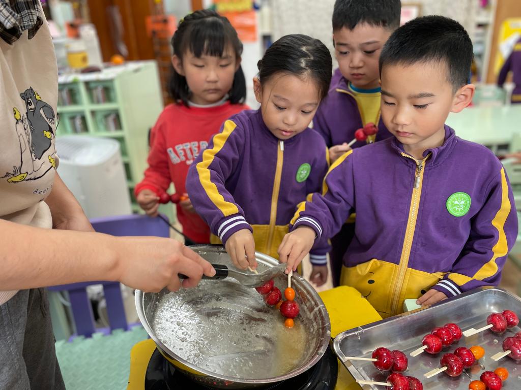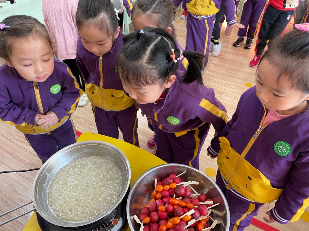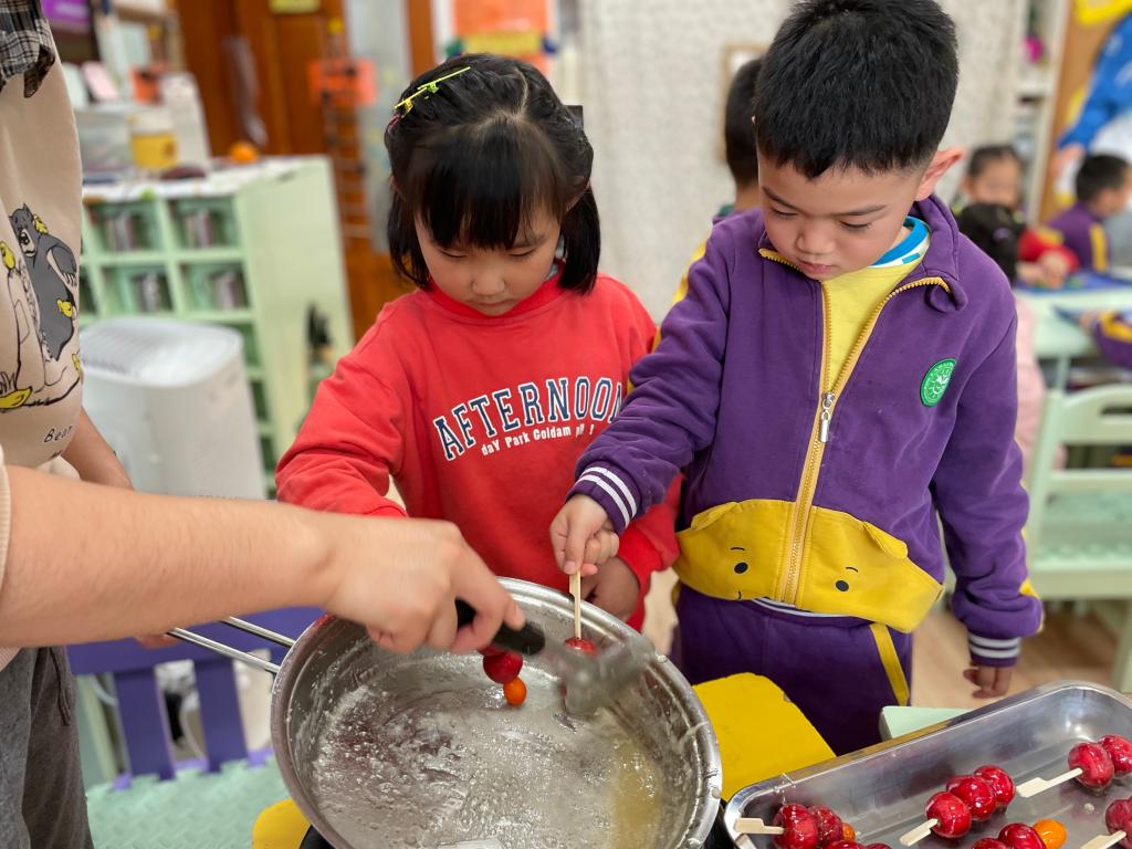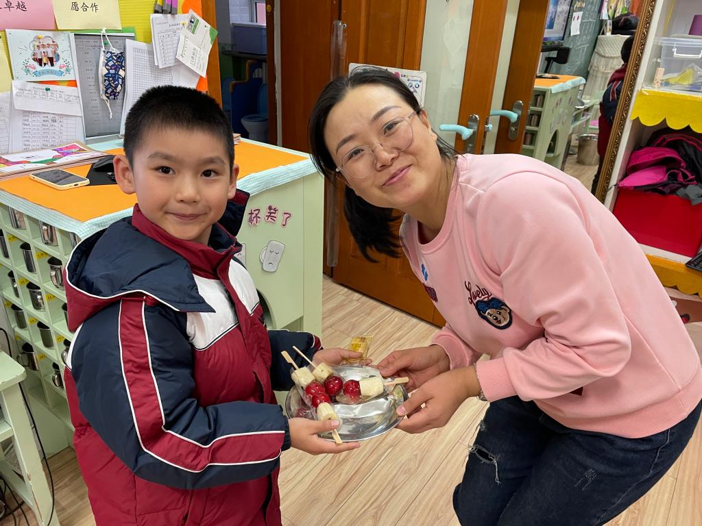 当然,好东西可不能忘记与同伴分享,带上我们亲手制作的糖葫芦给其他班级的老师们分享,回家和爸爸妈妈爷爷奶奶共同享用,体验分享带来的快乐吧。