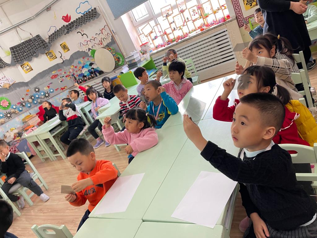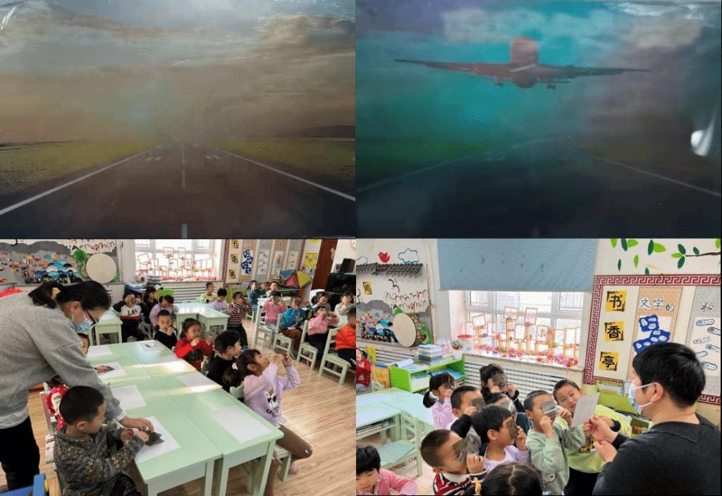 陆老师首先利用偏振片为小朋友们做了一个“消失的飞机”小实验。仅用裸眼观看展示的卡片,只看到空空的飞机跑道,然而当两眼透过偏振片观看时,凭空出现了一架银色的飞机从跑道飞起,如果小朋友们旋转偏振片,飞机机身的颜色竟然还会有亮暗变化,当转到一定程度时飞机却又消失了。孩子们瞪着圆圆的眼睛,直呼“简直太神奇了”!