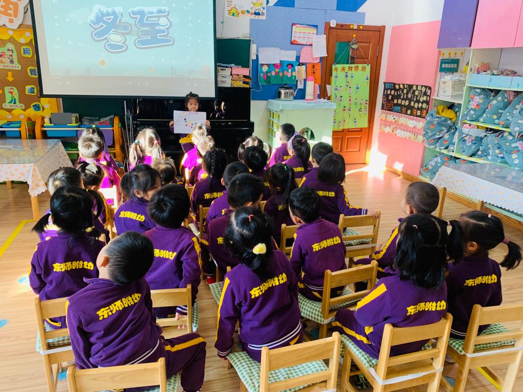 小朋友们首先在家和爸爸妈妈共同收集关于冬至的资料,精心准备了关于冬至的由来和习俗、好听的绘本故事、有趣的小儿歌、可爱的手指操、动听的歌曲、欢快的舞蹈、好看的手工……将自己喜欢的活动与小朋友们分享,共同感知和体会冬至的快乐。在这一过程中,不仅激发了孩子们的求知欲望和探索兴趣,更让他们进一步了解冬至,知道冬至是全年中白天最短、黑夜最长的一天,并深刻感受冬至带来的乐趣。