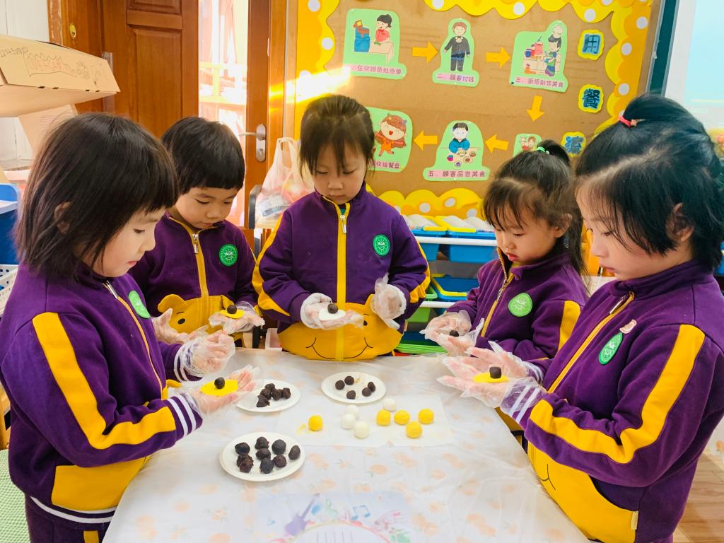 在分享搜集资料的环节后,小朋友们了解到冬至的习俗是北方吃饺子、南方吃汤圆,小朋友们在家都体验过包饺子,但是却没有体验过做汤圆,小朋友对做“汤圆”产生了极大的兴趣。大家喜欢把冬至当作团圆节,在南方的冬至中,汤圆象征合家团圆更美好,吃汤圆意味新的一年合家幸福、团团圆圆,所以这个冬至小朋友们决定一起做汤圆!