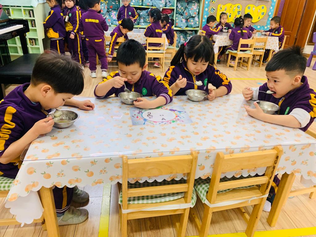滚滚的汤圆,包裹着美好的祝愿,包裹着甜美的生活,包裹着孩子们喜悦的心情!通过开展此次活动,让孩子们加深了对二十四节气——冬至的认识,感受浓浓传统文化的氛围,更锻炼了孩子们的动手能力。让他们充分感受到自己动手做汤圆的乐趣,体验在劳动中收获成功和快乐。从圆圆的汤圆中体会了别样的滋味。汤圆是甜甜的,孩子是幸福的!也让孩子感受到童年时幼儿园这个大家庭带来的温暖。