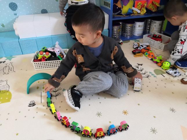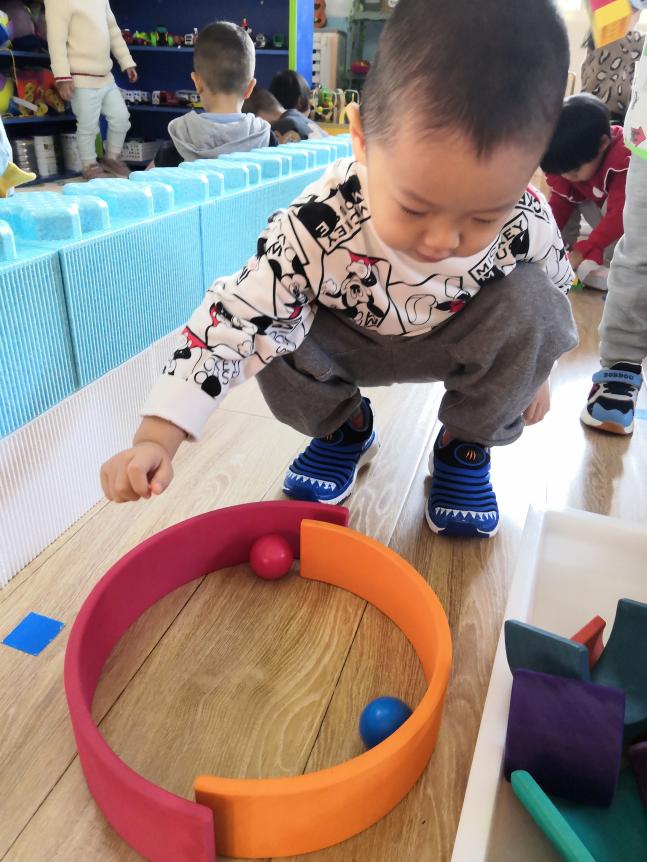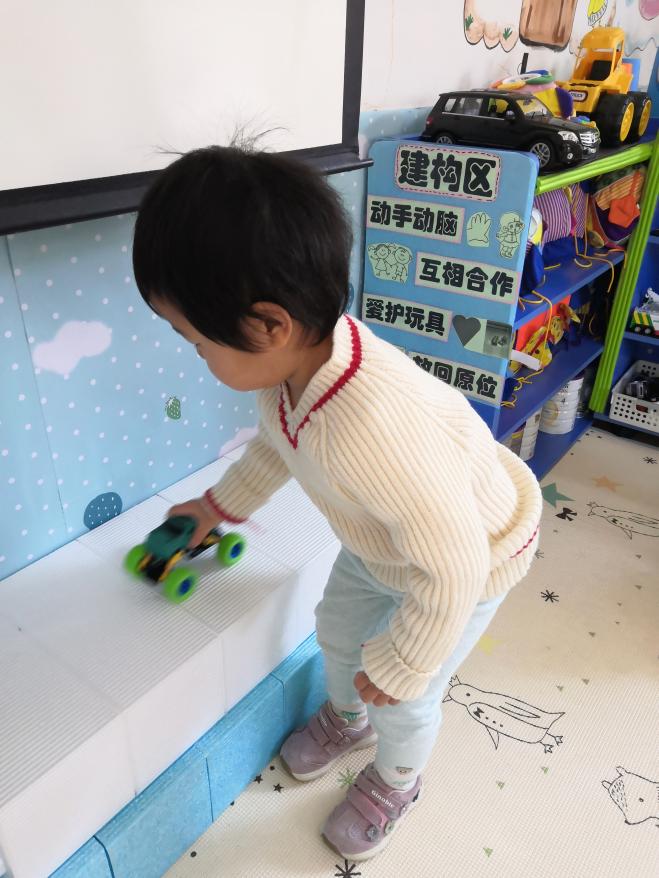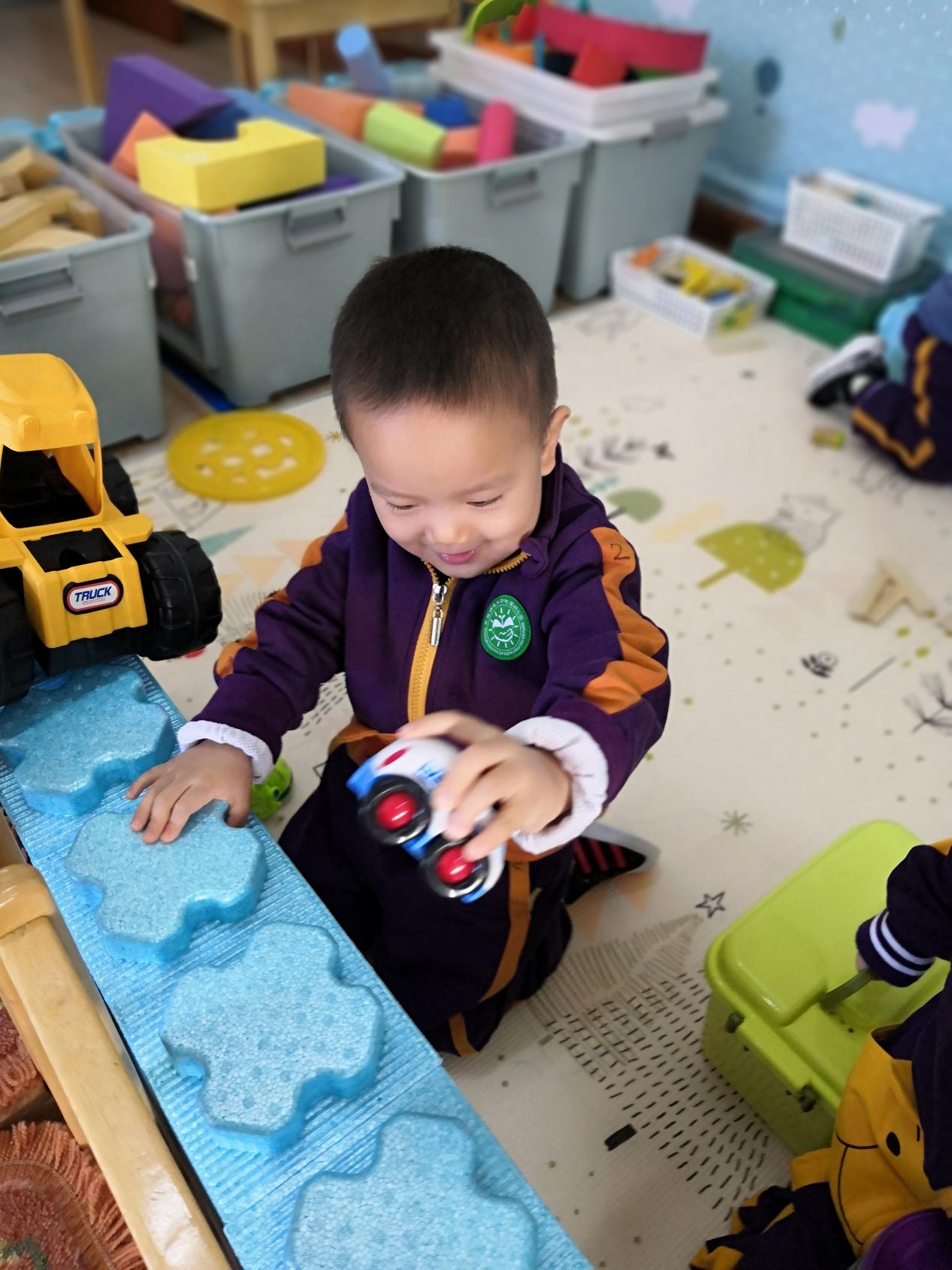 两岁多的孩子对一切新的东西都会生出好奇,一好奇就想看一看、玩一玩、摸一摸、试一试。近段时间,一推就能向前跑的小汽车吸引了孩子们。“小汽车怎么跑得那么快,我要去追它!”“小球比小汽车跑得还快呢!”“骨碌碌”的世界藏着很多奥秘,快看,豆豆五班的“小小科学家”已经开启探索之旅了!