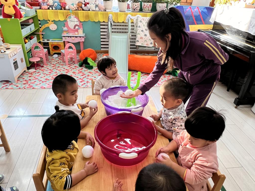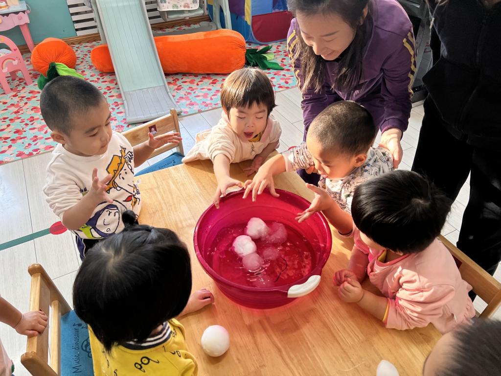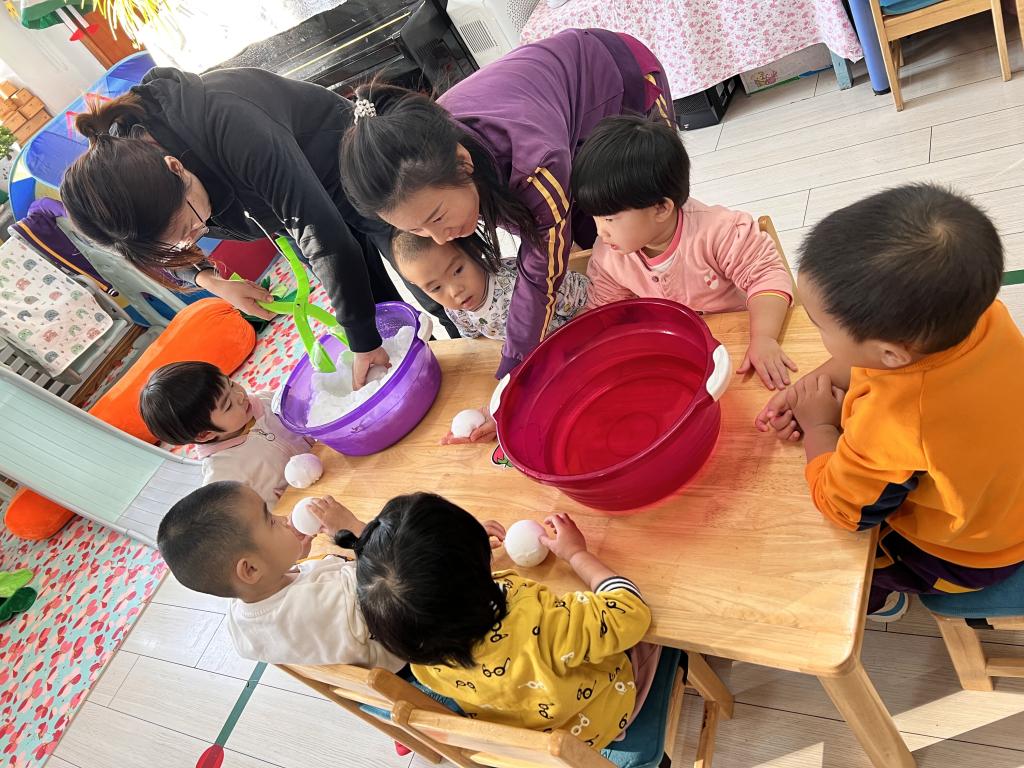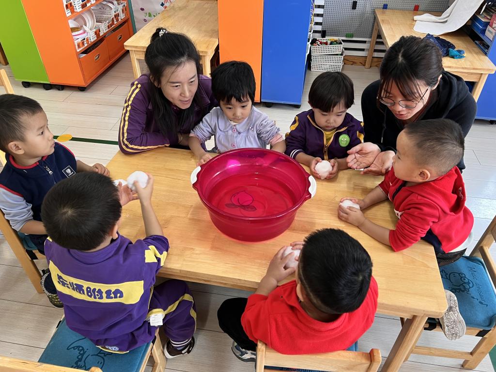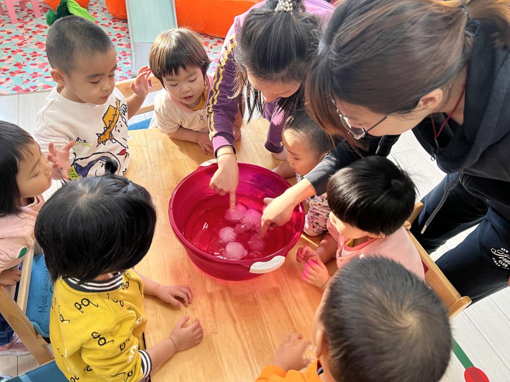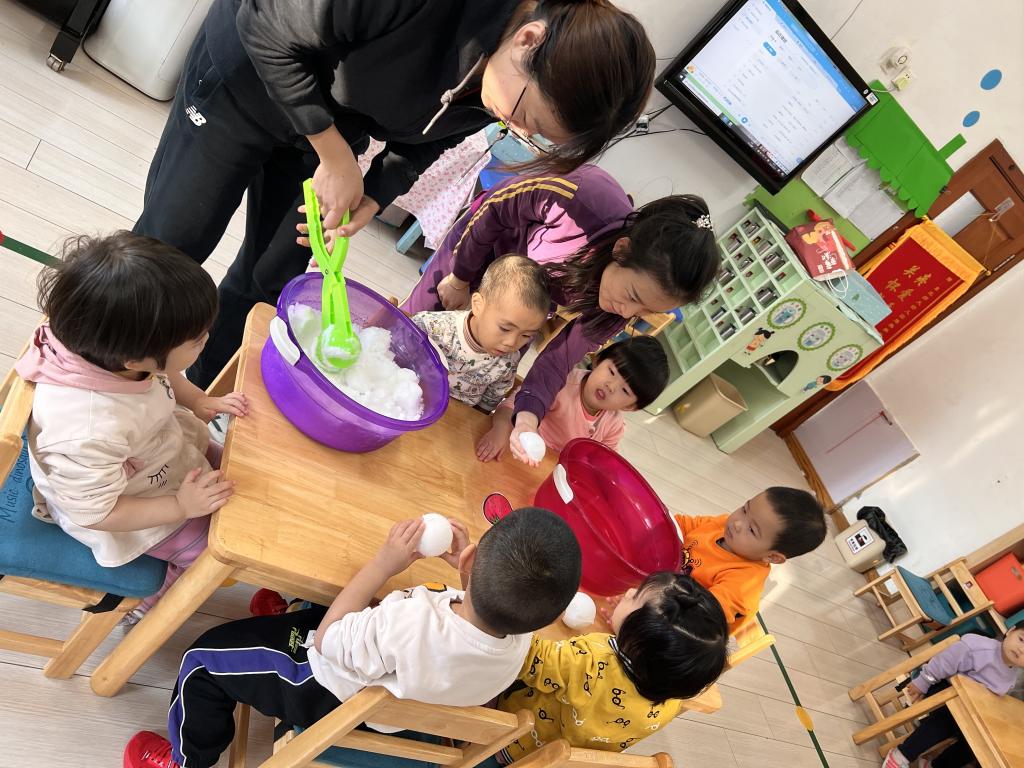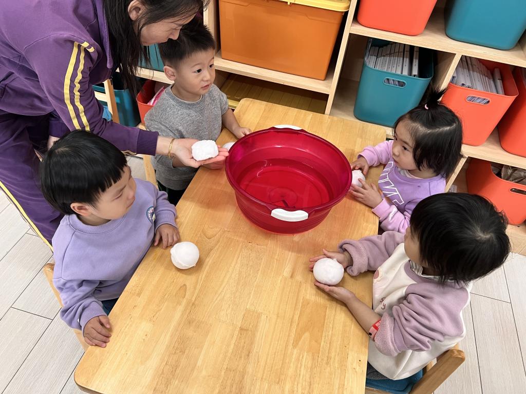 “小可爱”们在老师的引导下一起来探索 发现,雪融化了?雪哪去了?雪不见啦?