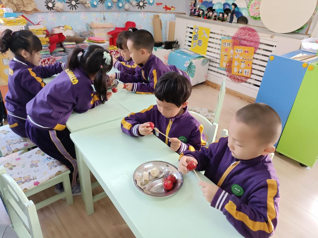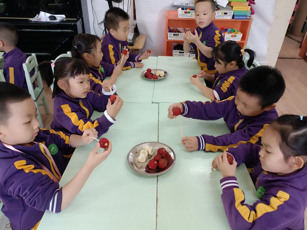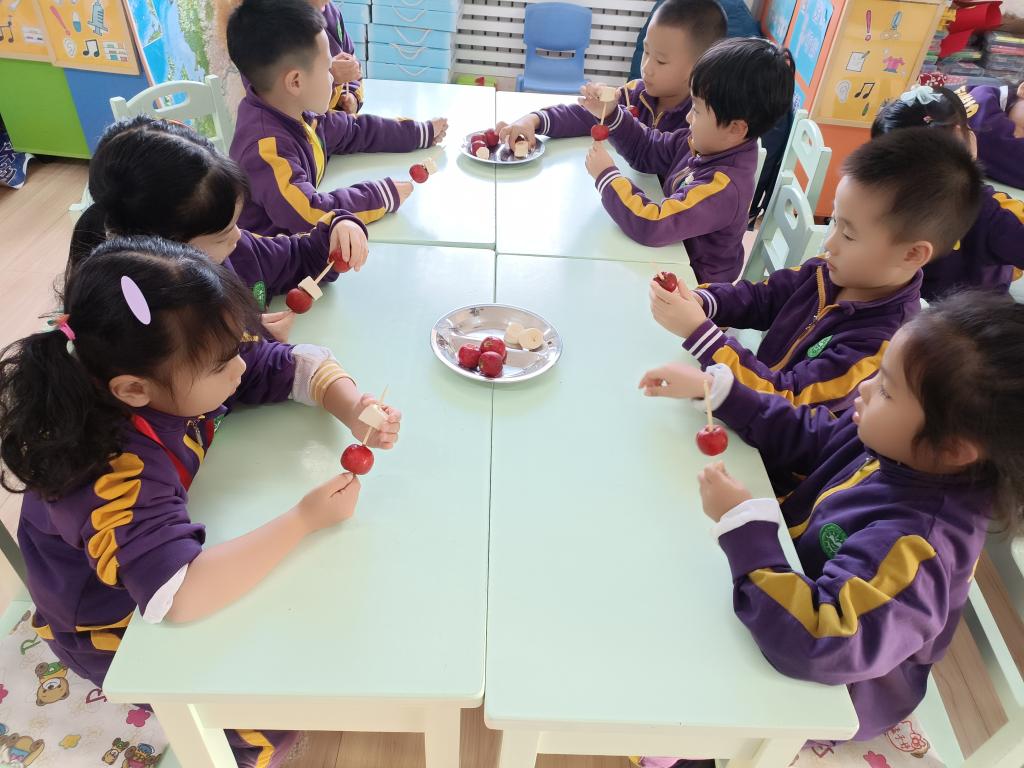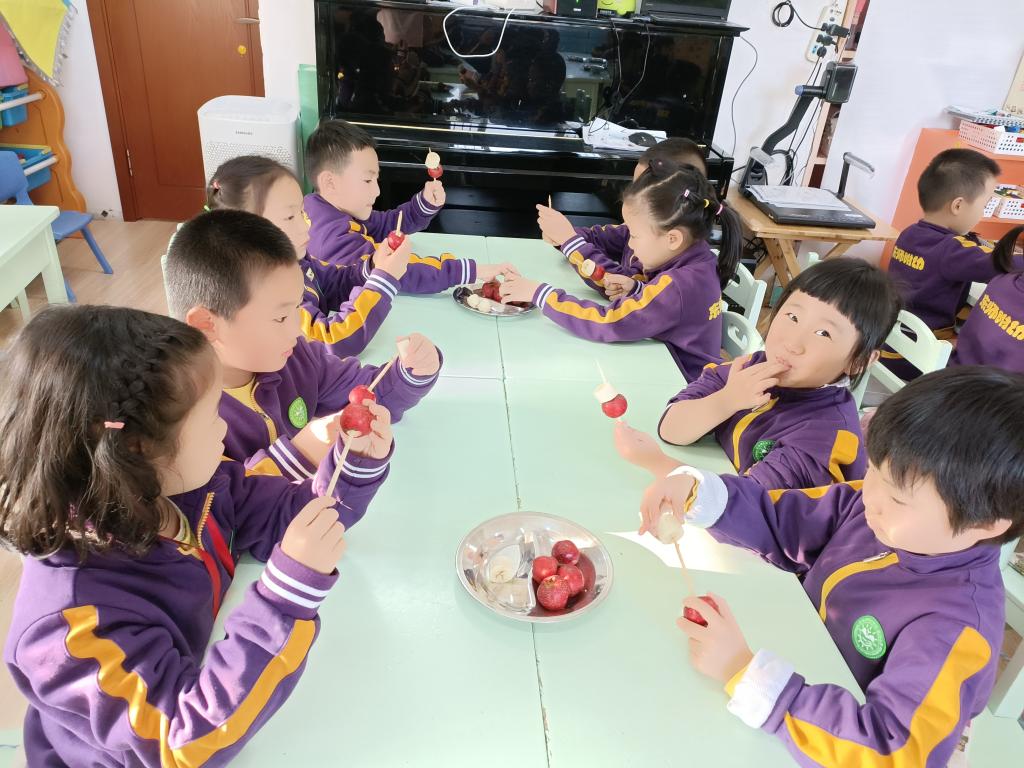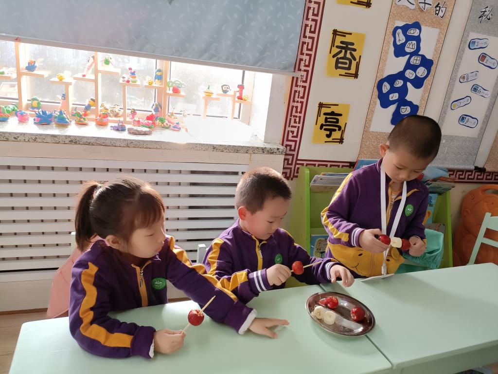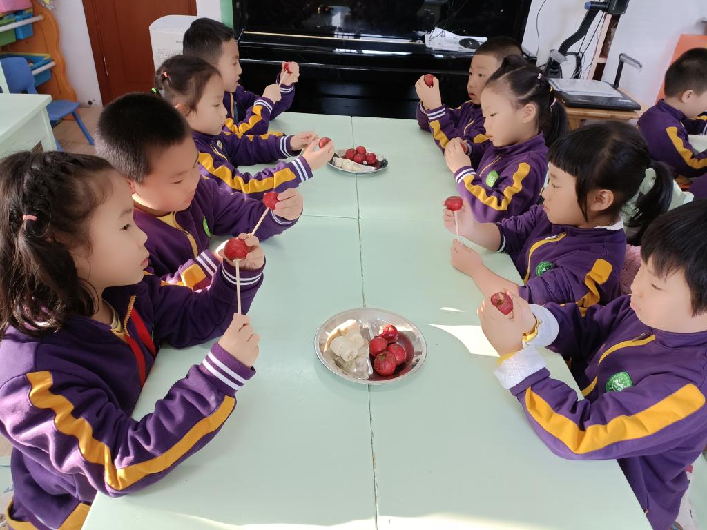 果果五班的小朋友和老师一起围绕着应季水果山楂开展了多项活动,也拉开了我们班《食在中国》主题活动的序幕。