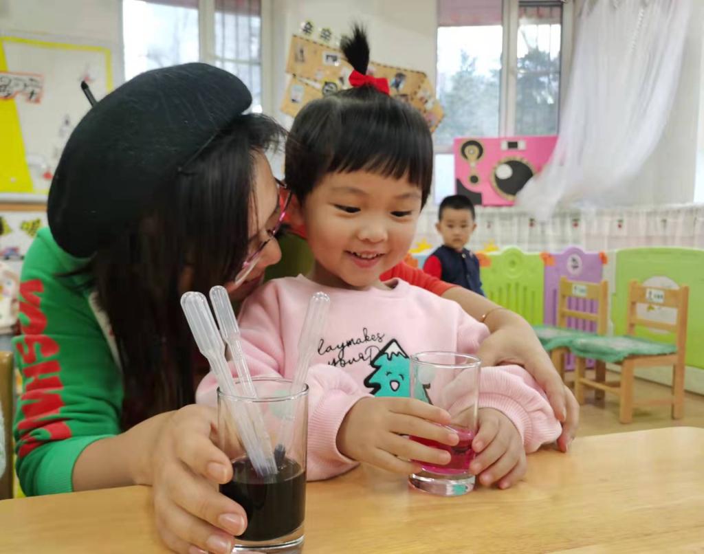 马偲桐(梦梦)小朋友的妈妈,是长春理工大学的一位化学老师,她为孩子们带来了奇妙的科学启蒙活动。在讲述了科学小故事“小精灵紫甘蓝”后,孩子们认识了蔬菜王国中的紫甘蓝,对“小精灵”充满了好奇。