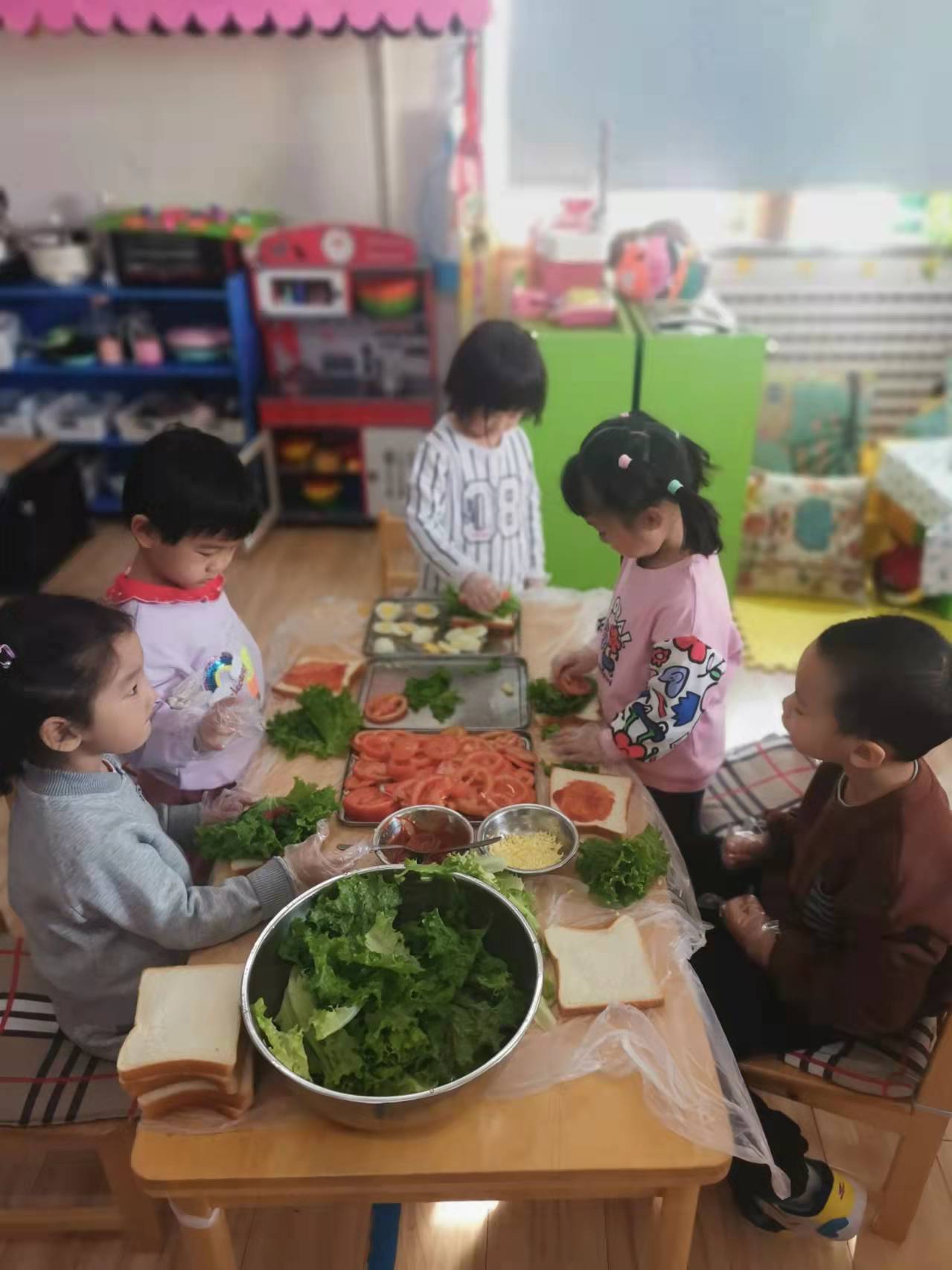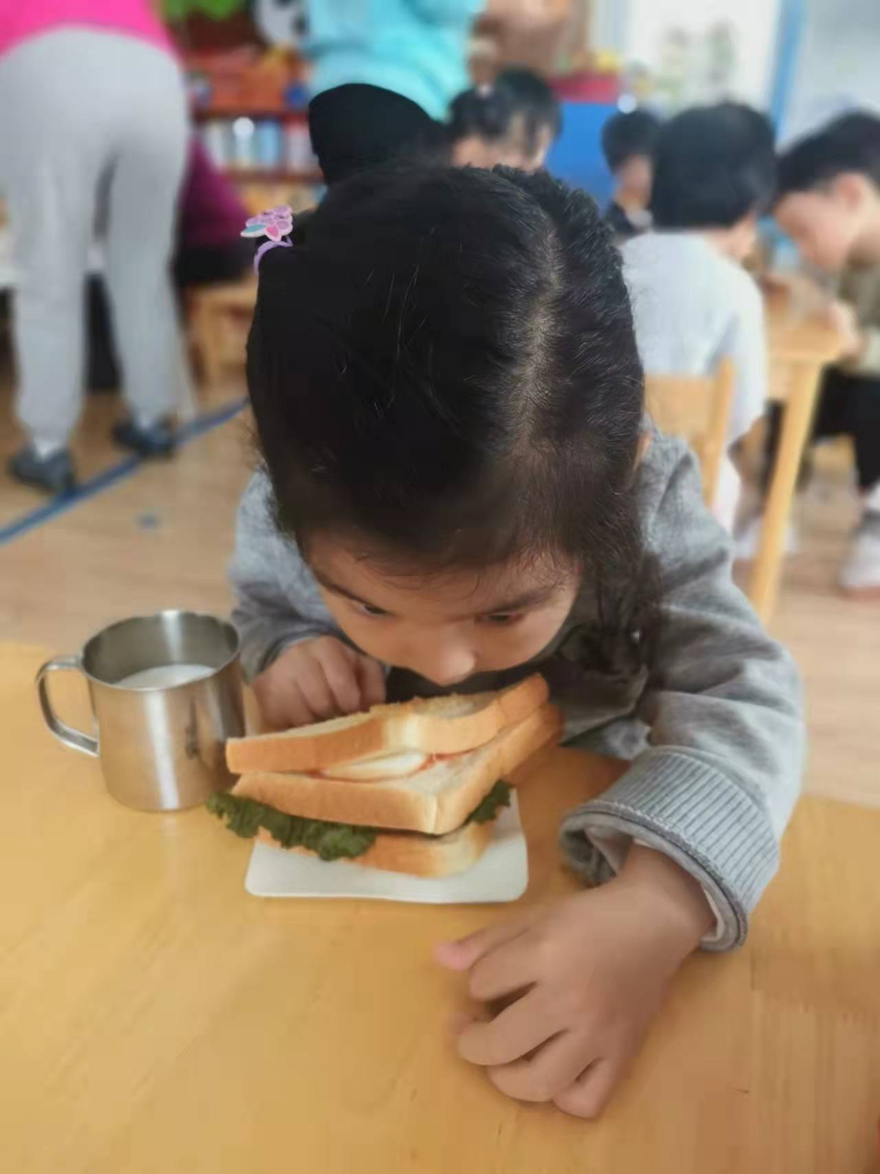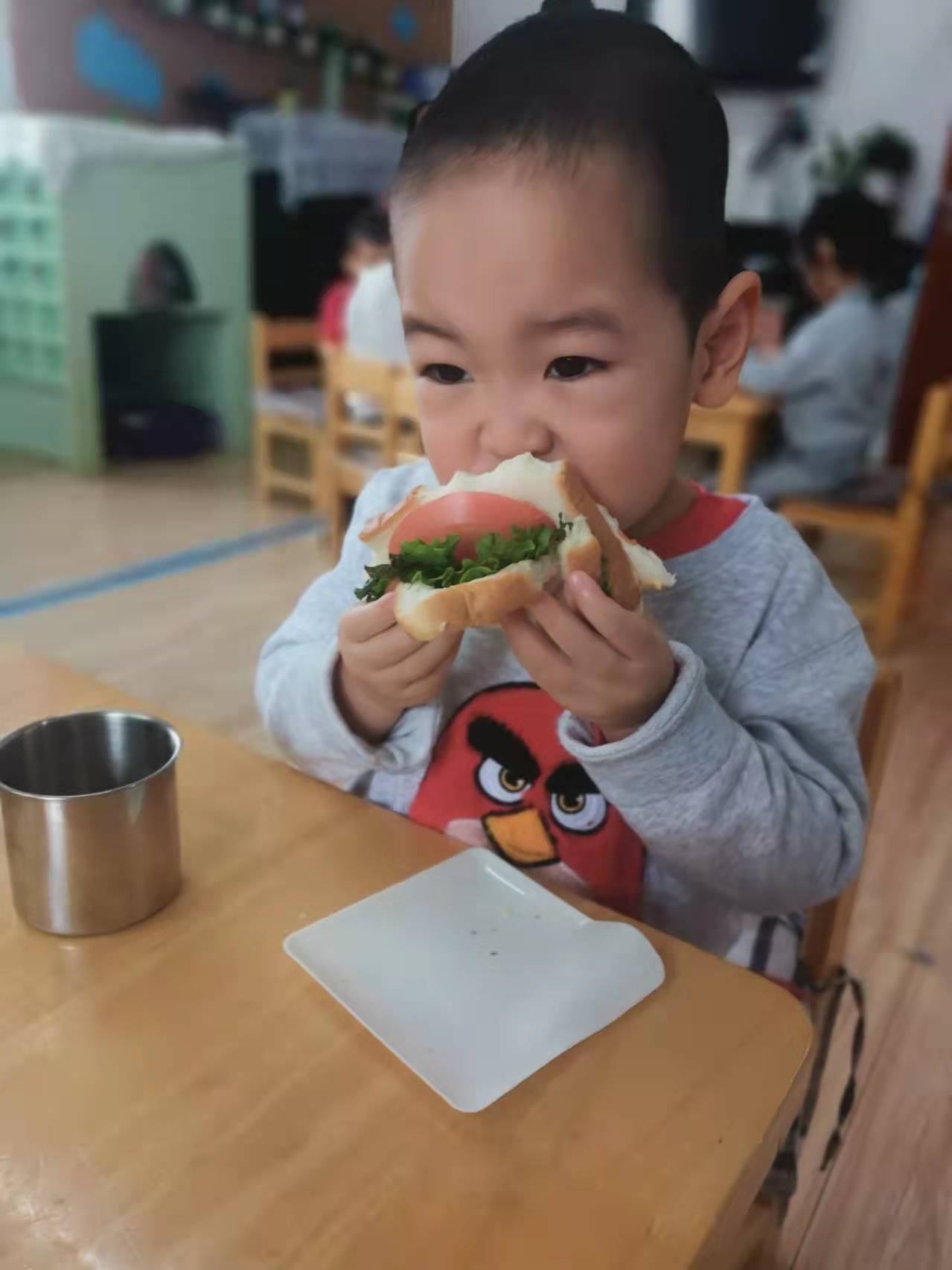 对于“幸福”,每位宝贝都有不同的定义,有的是清晨醒来时的第一抹阳光,有的是餐后的阅读时光,有的是和老师一起的轻轻哼唱儿歌...但是今天对于宝贝们来说最幸福的事就是自己动手制作三明治了。