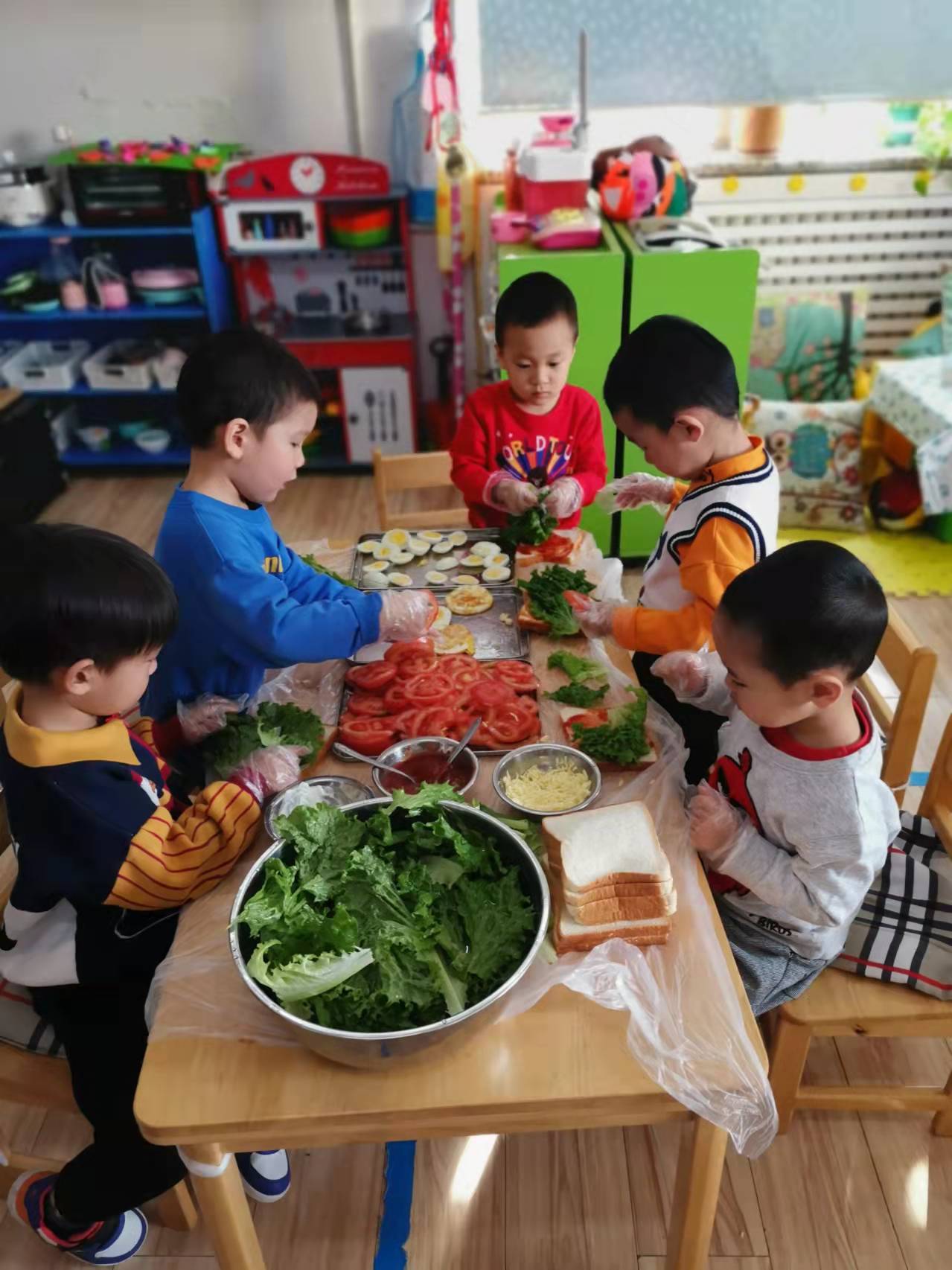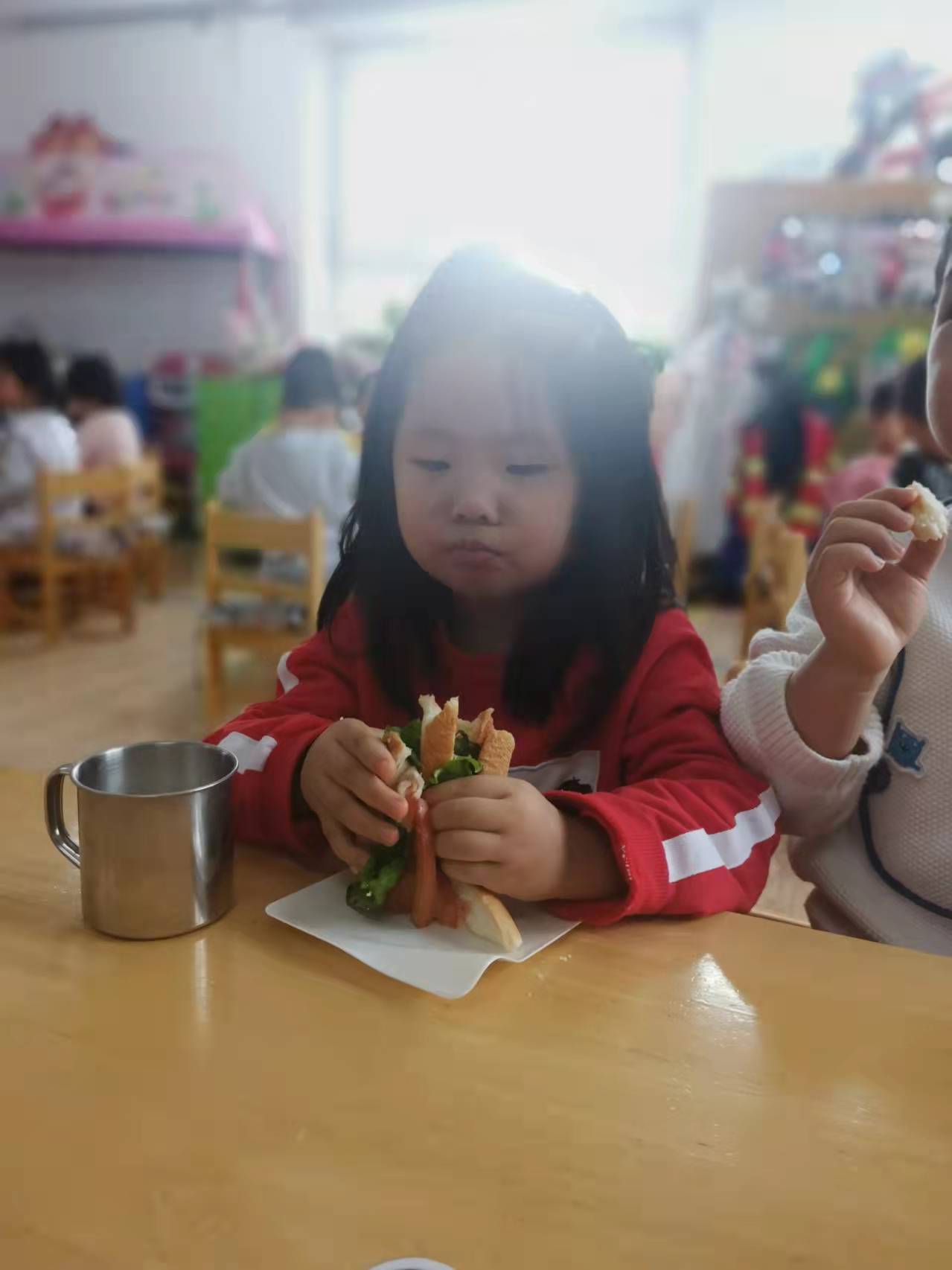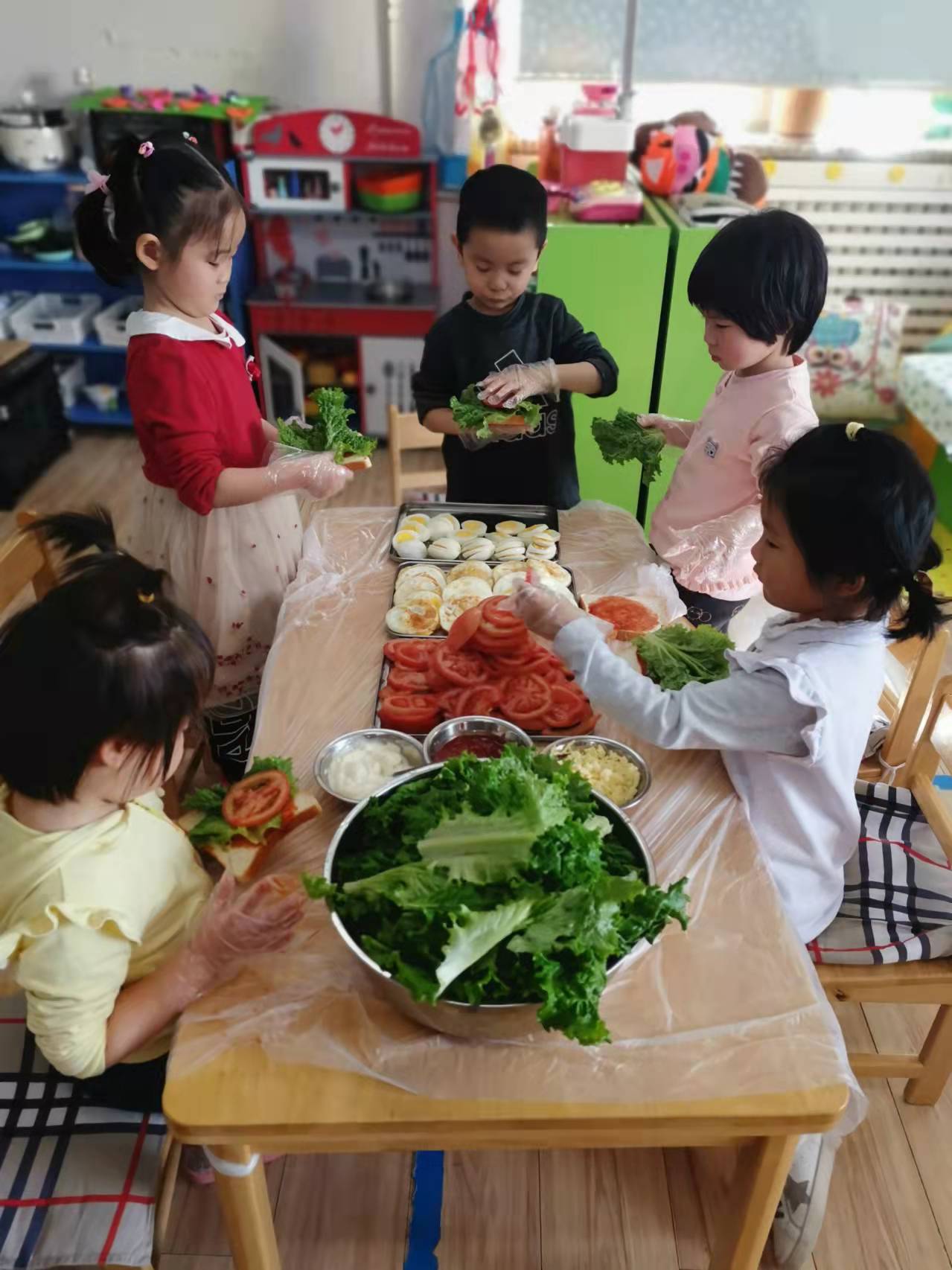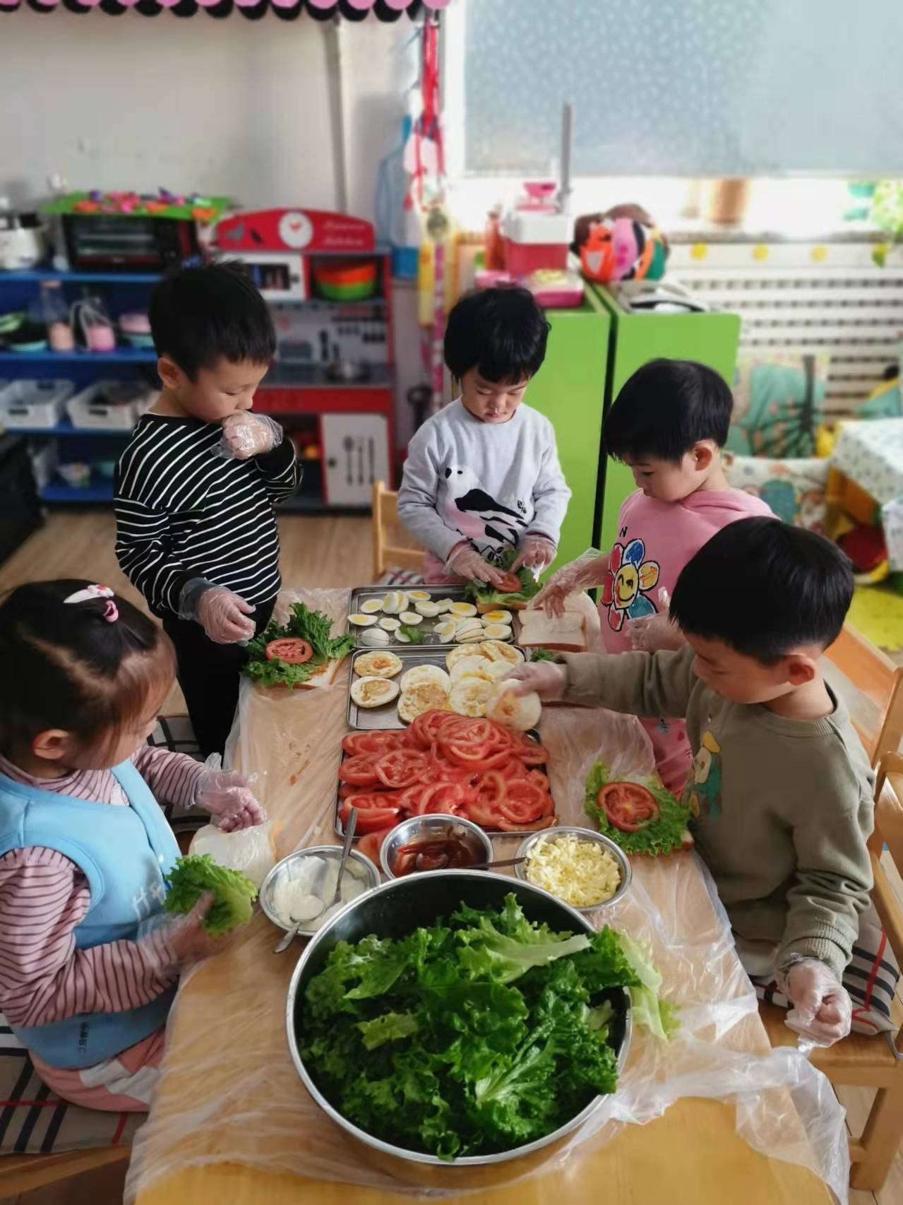 对于“幸福”,每位宝贝都有不同的定义,有的是清晨醒来时的第一抹阳光,有的是餐后的阅读时光,有的是和老师一起的轻轻哼唱儿歌...但是今天对于宝贝们来说最幸福的事就是自己动手制作三明治了。