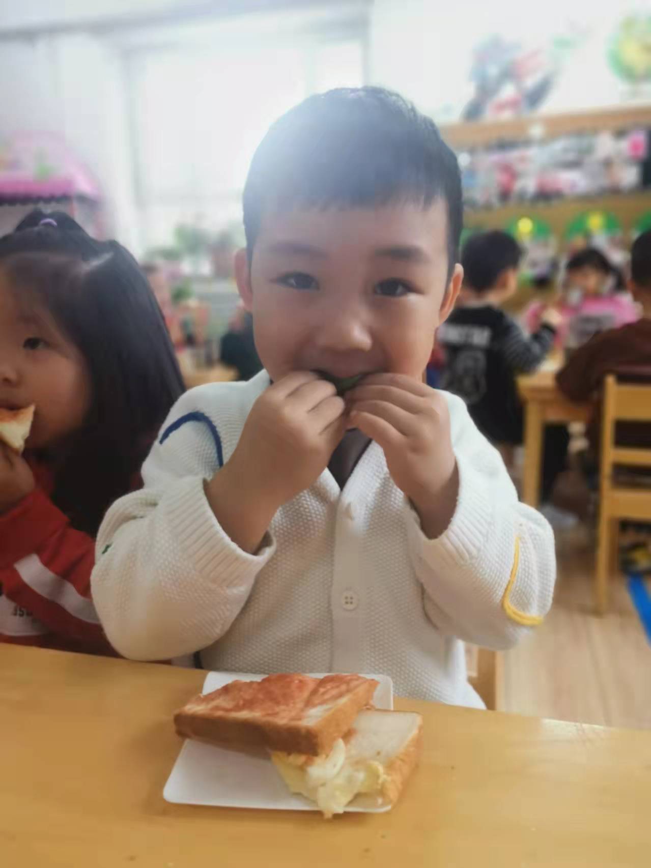 《3-6岁儿童学习与发展指南》中指出:良好的社会性发展对幼儿身心健康和其它各方面的发展都具有重要影响。通过制作幸福三明治,宝贝们在看一看、做一做、尝一尝中,了解了三明治的制作方法,增强了动手能力,体验制作三明治的快乐,更懂得分享,更加喜欢幼儿园的生活,获得了满满的幸福感。