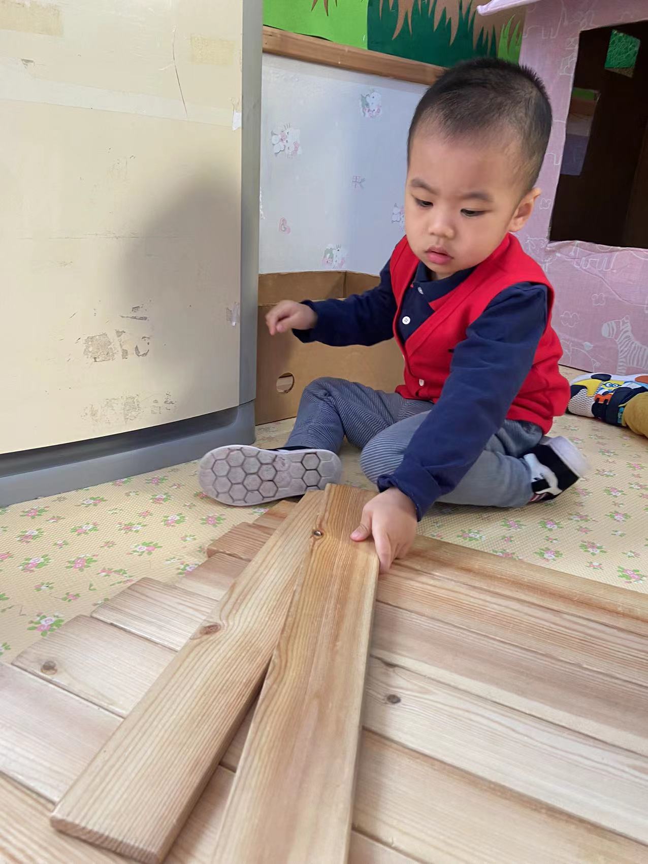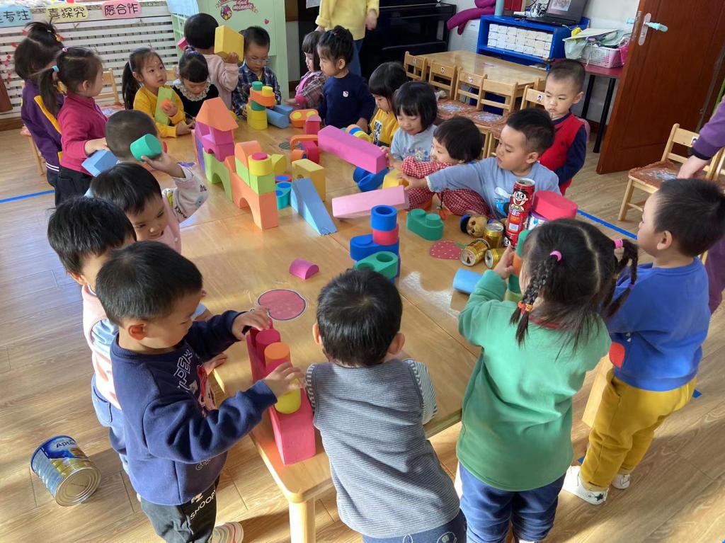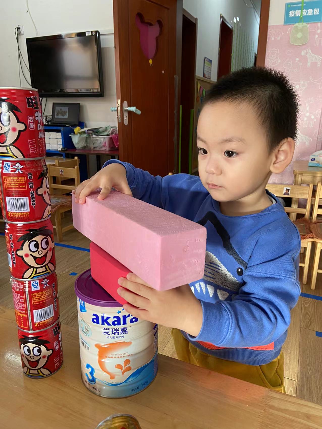 讨论结束后,小朋友们在班级里搜集到了各种自己喜欢的建构材料,并且利用这些材料进行了初步的练习,比如:在搭建方式上选择的较为简单的围合和垒高的方法。