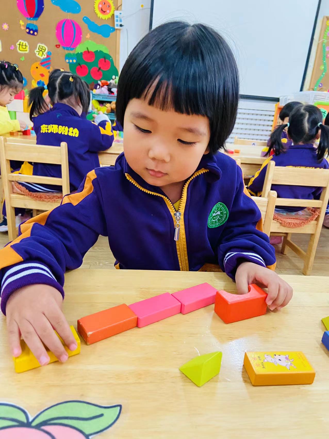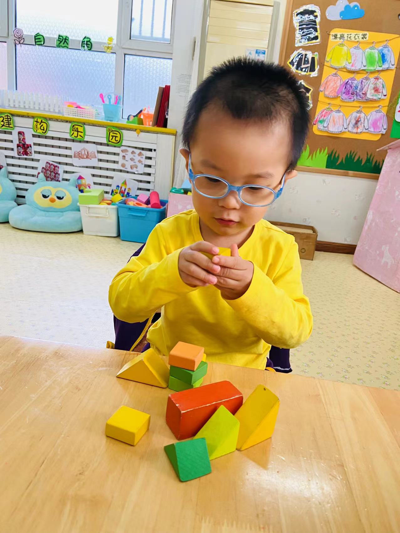 建构游戏中,幼儿利用各种积木开展建构活动,并按照自己的需要、兴趣和意愿拼搭作品,表达自己的生活经验和想法。《3—6岁儿童发展指南》指出:“要珍视游戏和生活的独特价值,最大限度地支持和满足幼儿通过直接感知、实际操作和亲身体验获取经验的需要。”通过建构活动不仅使幼儿认识和熟悉一些几何图形,也可以通过各种不同形状积木的不同组合,发展幼儿想象力、创造力和发散性思维的能力。从拼拼、玩玩活动中充分发展幼儿的动手能力、表现能力和创造能力。