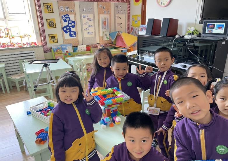 在小朋友们团结合作下,搭建任务完成,好漂亮的作品,棒棒哒!