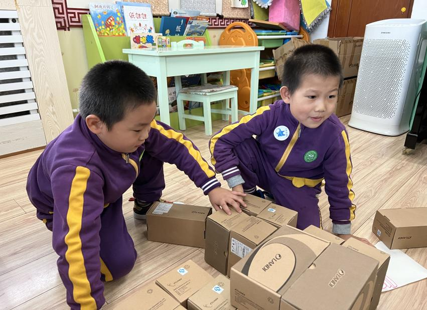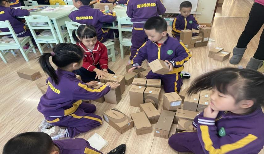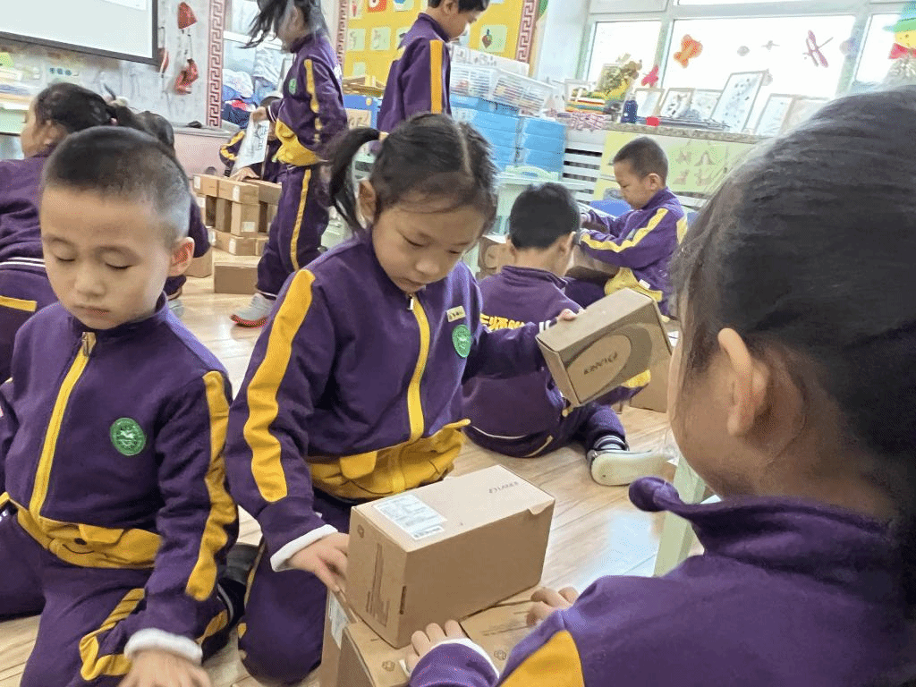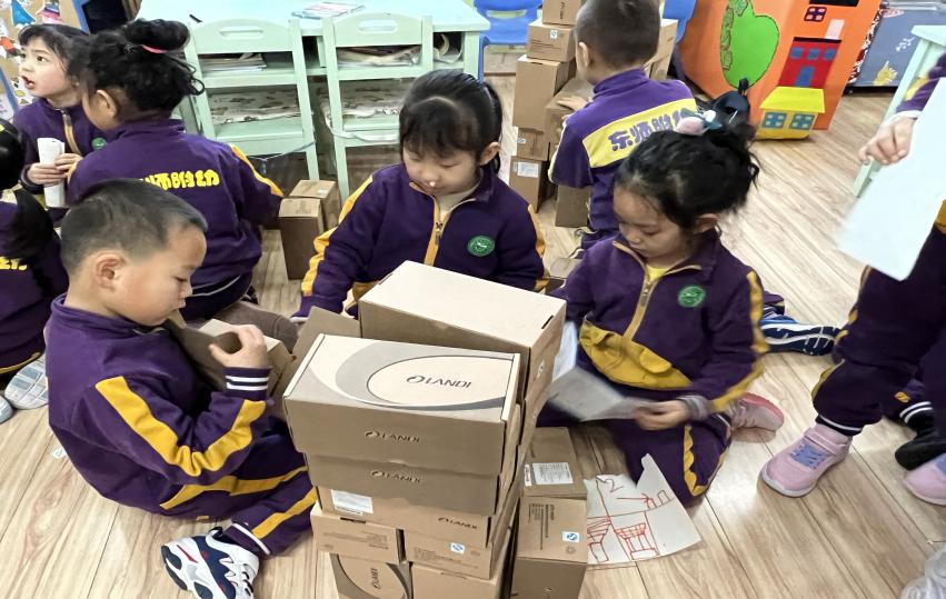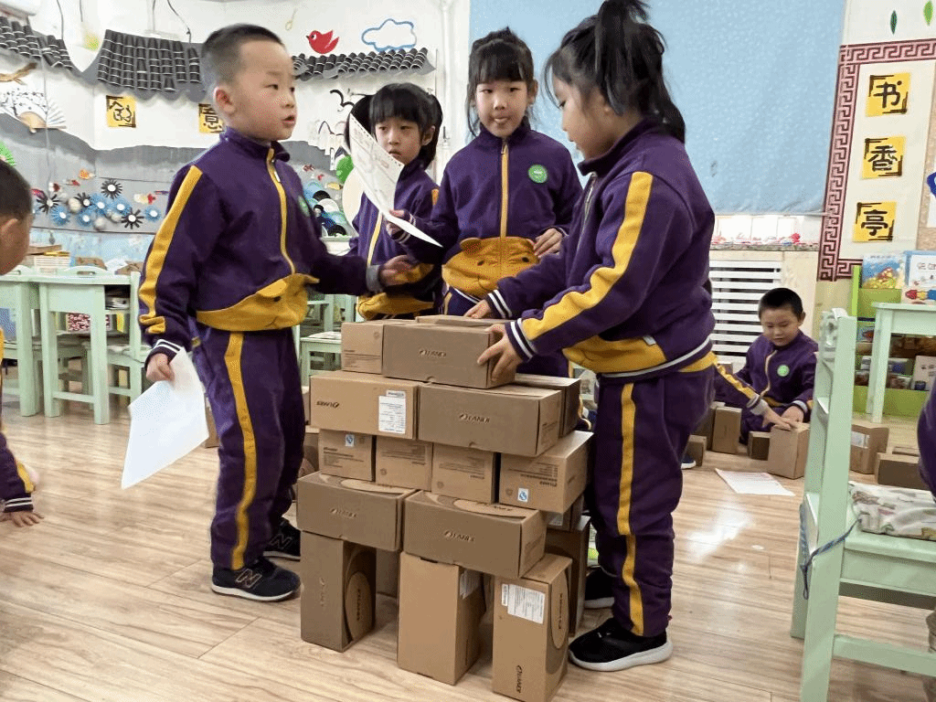 用什么材料来搭建呢?孩子们最先想到的是我们班的特色建构材料——纸盒。