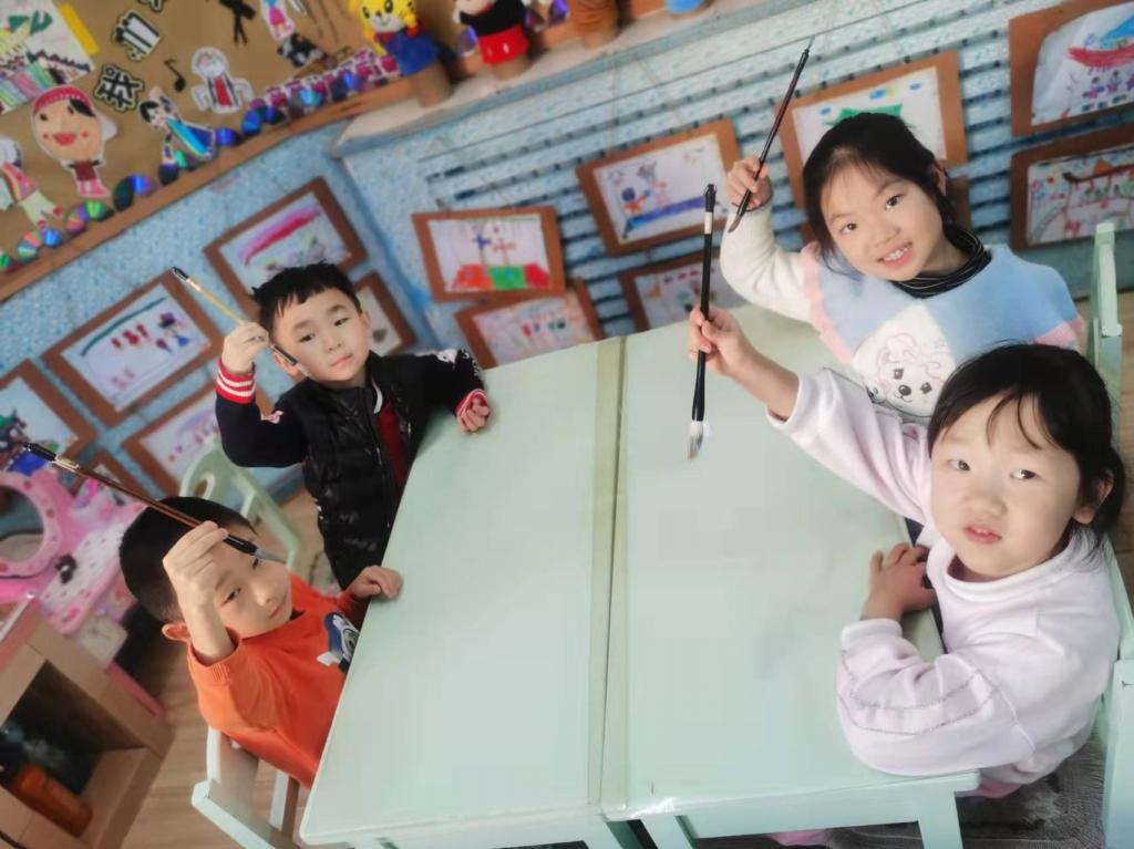 毛笔的“握笔”方法很有趣,伸出“小手枪”,握住笔中间的地方,老师,快看看我的握笔姿势对不对呀!